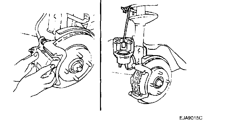 CAUTION: Be careful not to depress the brake pedal while disassembling the pads.