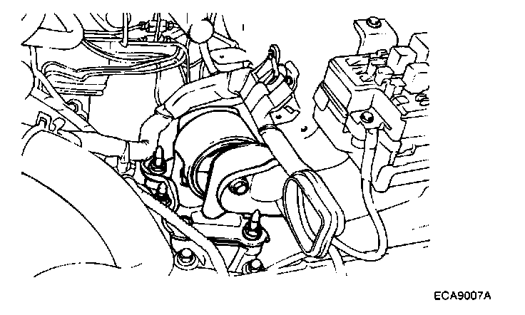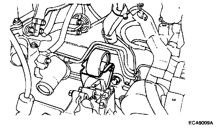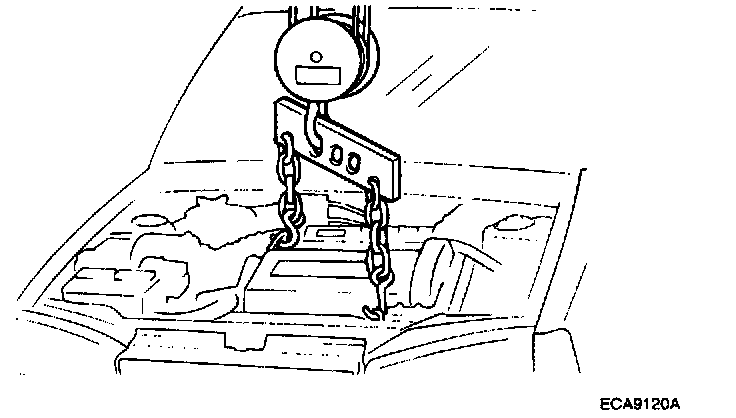 Attach a chain or cable to the engine hooks and lift enough so that there is no pressure on the motor mounts.
