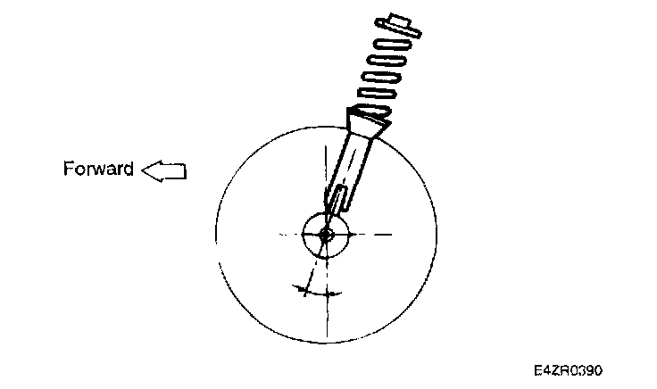 FRONT WHEEL ALIGNMENTWhen using a commercially-available computerized four wheel alignment equipment (caster, camber, toe and turning angle) to inspect front wheel alignment, always position the car on a level surface and the front wheels in the straight ahead position. Prior to inspection make sure that the front suspension and steering system are in normal operating condition and that wheels and tires are free of deflection and tires are inflated to specification.