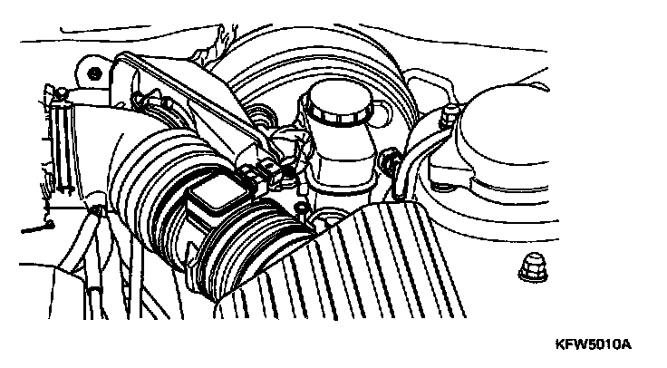 MASS AIR FLOW (MAF) SENSORThis hot film type Mass Air Flow (MAF) Sensor is composed of a hot film sensor, housing and metering duct (hybrid sensor element). Mass air flow rate is measured by detection of heat transfer from a hot film probe because the change of the mass air flow rate causes a change in the amount of heat being transferred from the hot film probe surface to the air flow. The mass air flow sensor generates a pulse so it repeatedly opens and closes between the 5 V voltage supplied from the ECM.