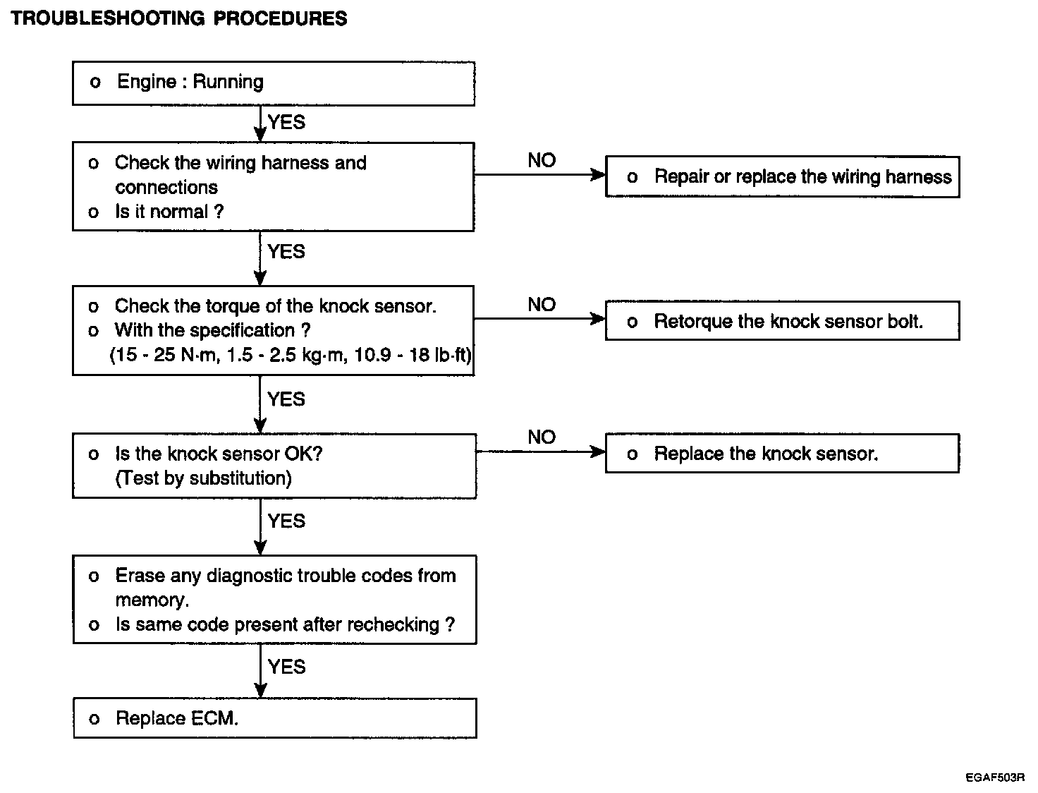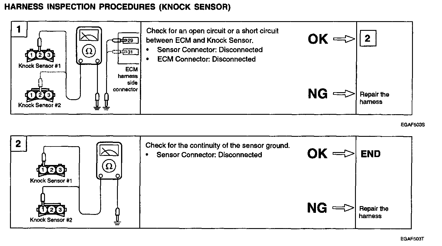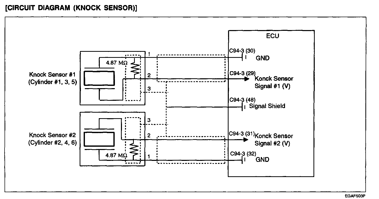 1. When the knock sensor signal is not detected, even though the engine is in an overload condition.