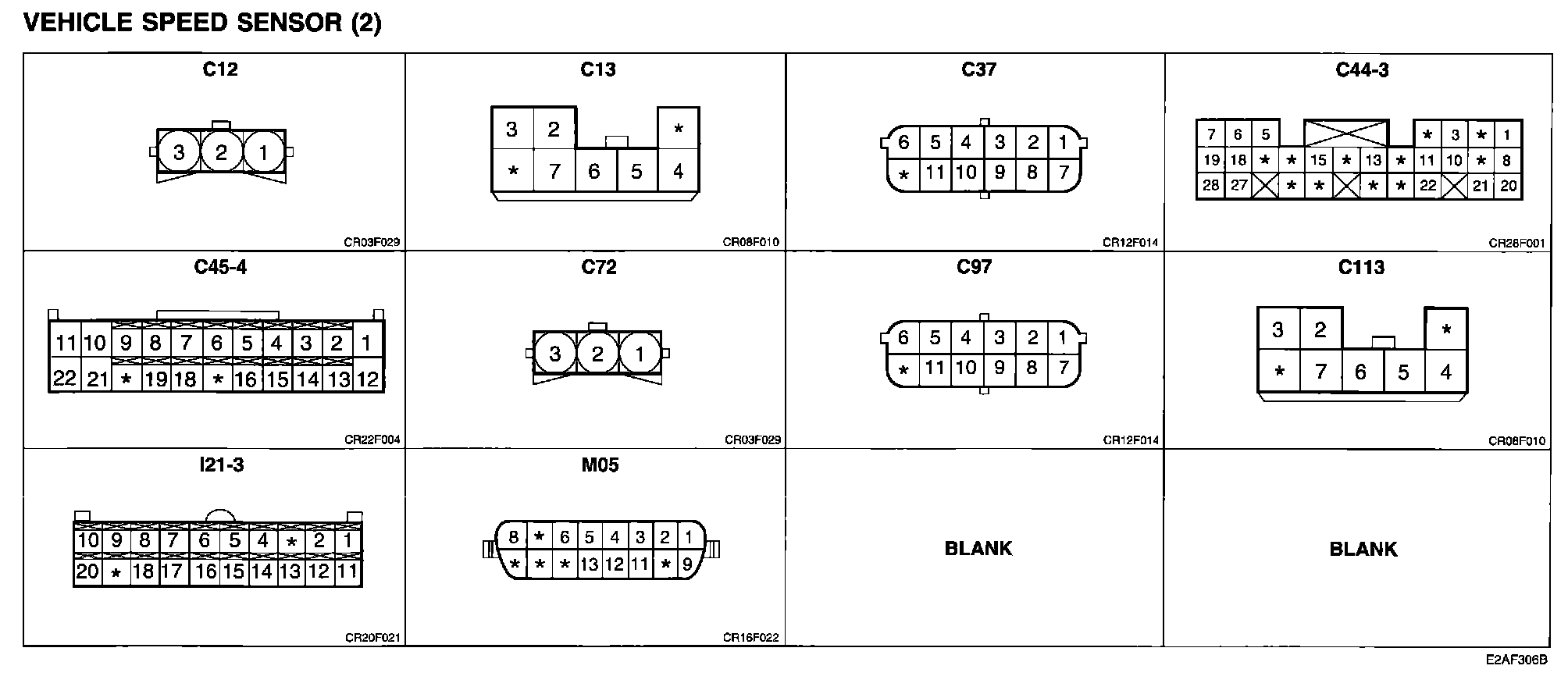 Vehicle Speed Sensor (2) Connector Pin Outs:
