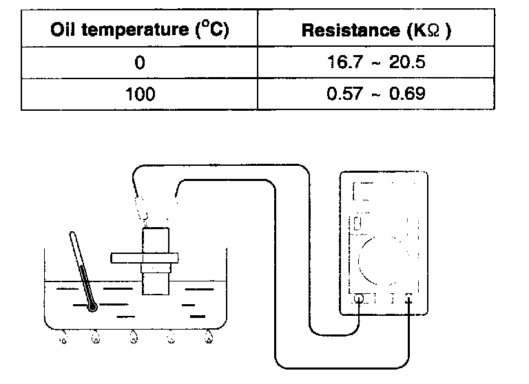 Measure the resistance between terminals No.1 and No.2 of the oil temperature sensor connector.