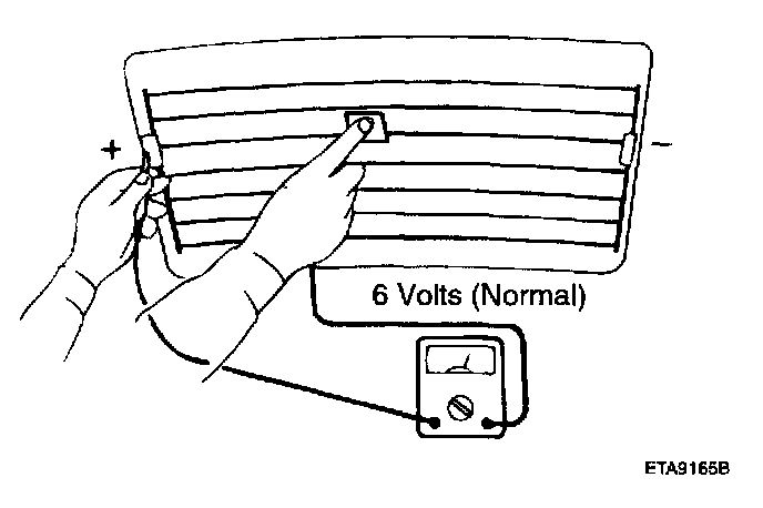2. If a heater line is burned out between the center point and (+) terminal, the voltmeter will indicate 12 V.