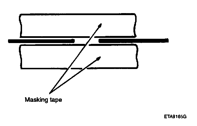 Wipe the glass adjacent to the broken heater line, clean with silicone remover and attach the masking tape as shown. Shake the conductive paint container well, and apply three coats with a brush at intervals of about 15 minutes apart. Remove the tape and allow sufficient time for drying before applying power. For a better finish, scrape away excess deposits with a knife after the paint has completely dried. (Allow 24 hours).