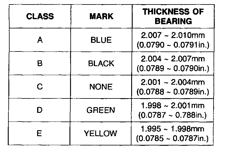 Main bearing clearance 0.004 - 0.022 mm (0.0002 - 0.0009 inch) 0.1 mm (0.004 inch)