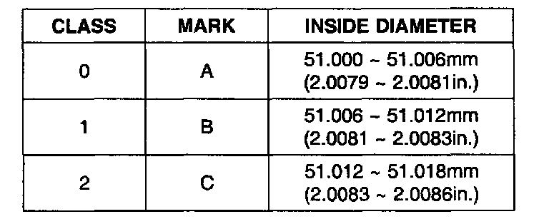 Main journal diameter 61.982 - 62.000 mm (2.4402 - 2.4409 inch)
