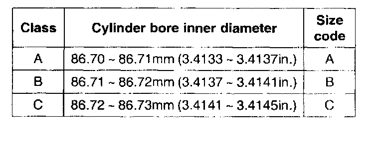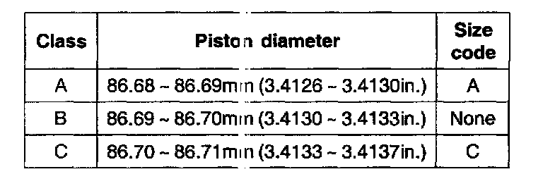 Piston pin diameter 21.001 - 21.007 mm (0.8268 - 0.8270 inch)
