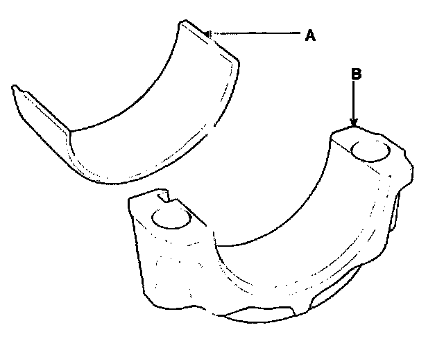 2) Align the bearing claw with the claw groove of the main bearing cap (A), and push in the 4 lower bearings (B).
