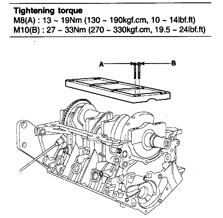 M8 (A): 13 - 19 Nm (130 - 190 kgf-cm, 10 - 14 ft. lbs.)