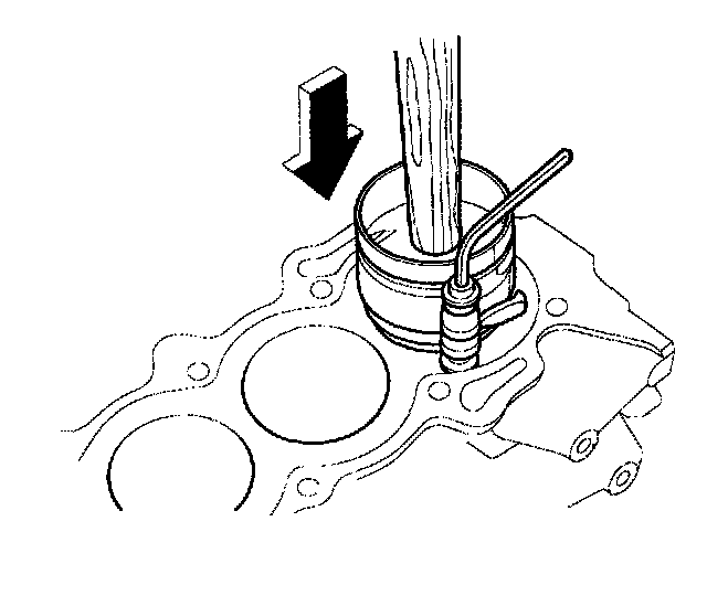 NOTE: Maintain downward force on the ring compressor to prevent the rings from expanding before entering the cylinder bore.