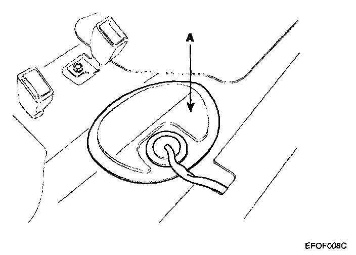2. Open the service cover (A) under the rear seat cushion.