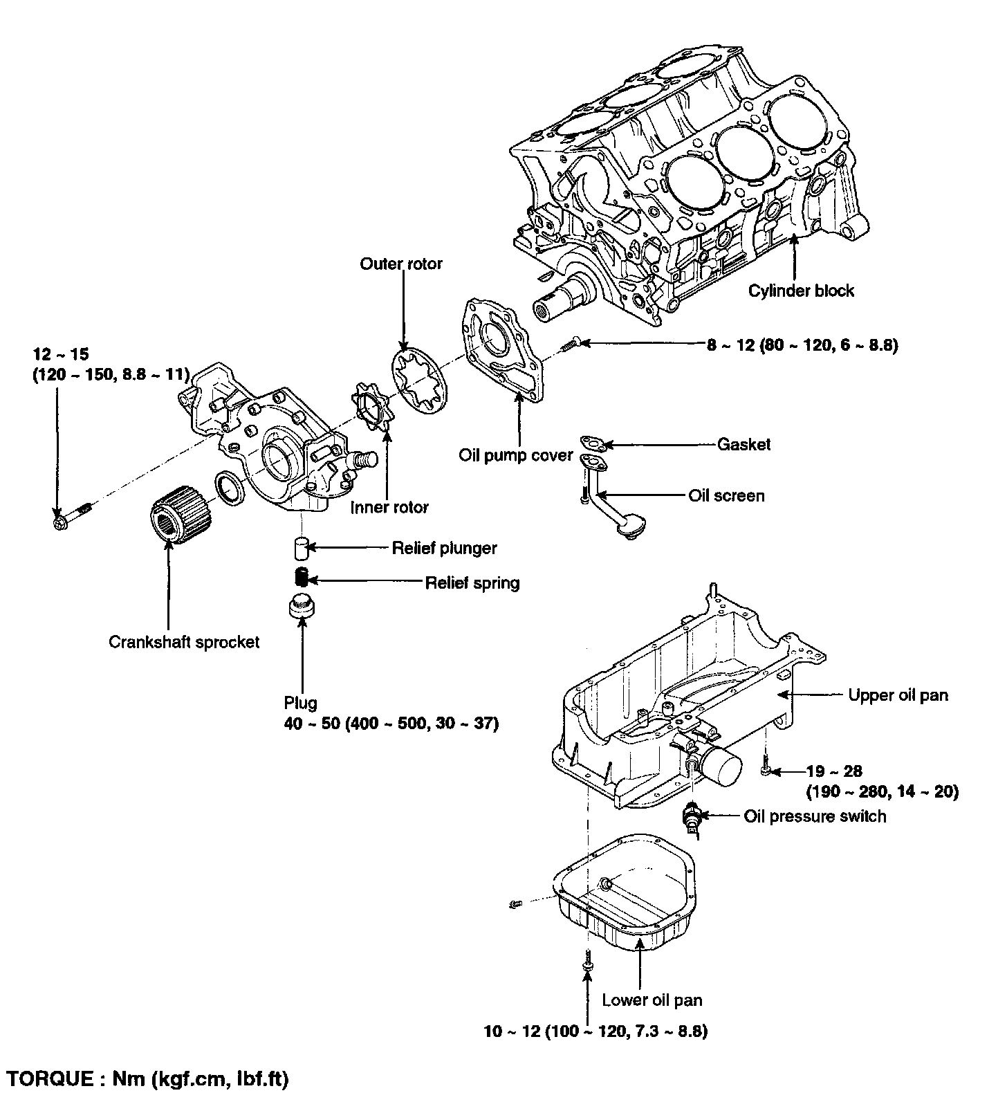 Tightening torque 35 - 45 Nm (350 - 4501 (kgf-cm, 26 - 33 ft. lbs.)
