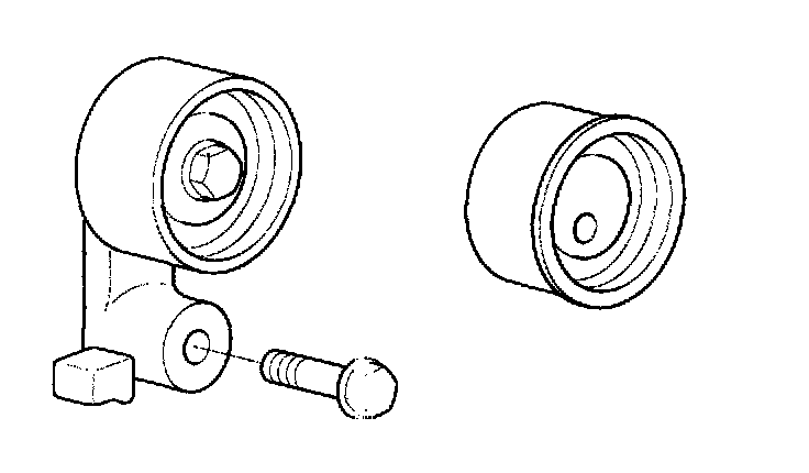 2. Inspect the tensioner pulley and the idler pulley for easy and smooth rotation and check for play or noise. Replace as necessary.