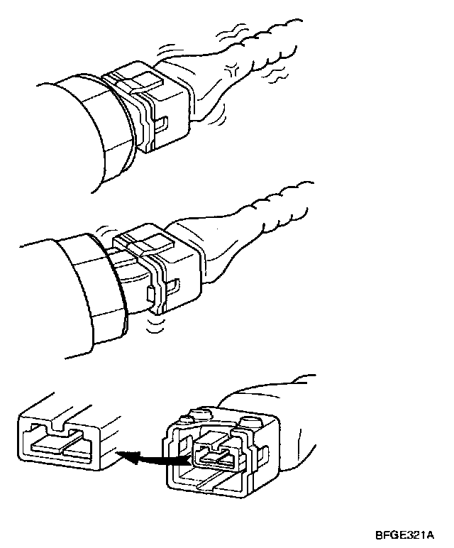b. Connectors and Harness: Lightly shake the connector and wiring harness vertically and then horizontally.