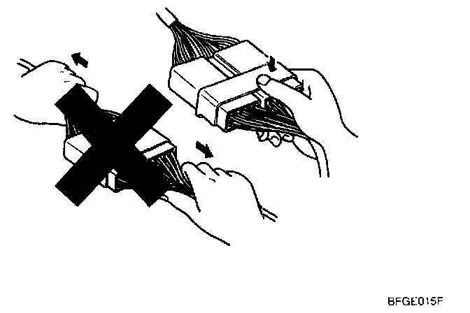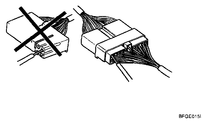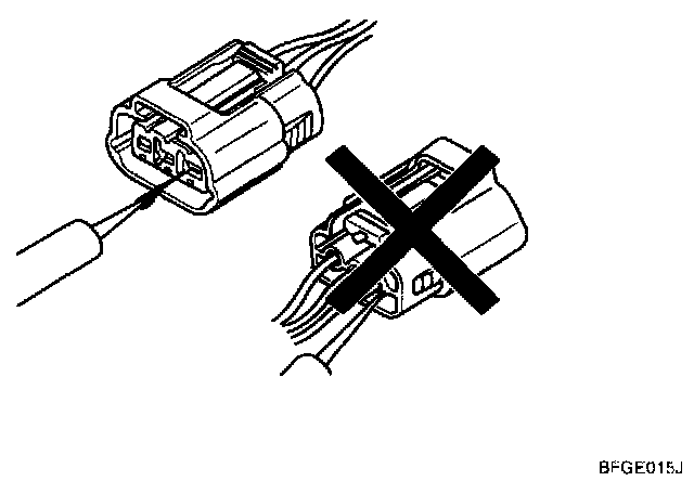 e. Check waterproof connector terminals from the connector side. Waterproof connectors cannot be accessed from harness side.