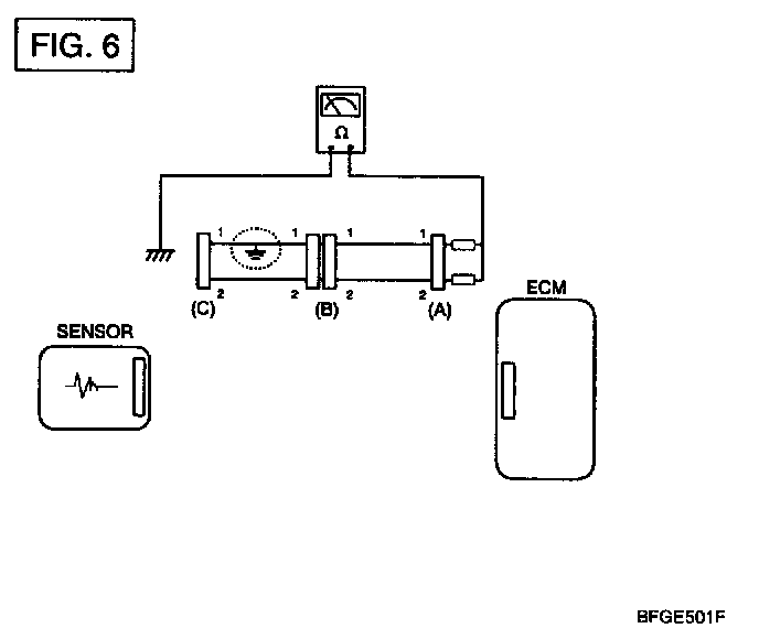 a. Disconnect connectors (A), (C) and measure for resistance between connector (A) and Chassis Ground as shown in [FIG. 6].