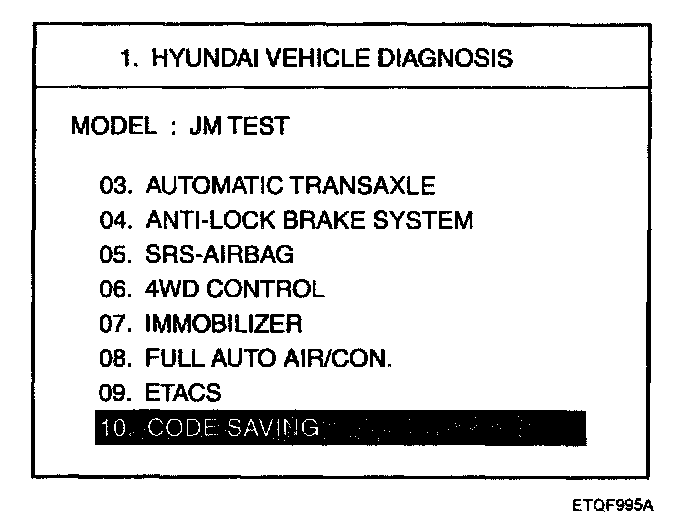 3. After selecting "CODE SAVING" menu, button "ENTER" key, then the screen will be as shown.