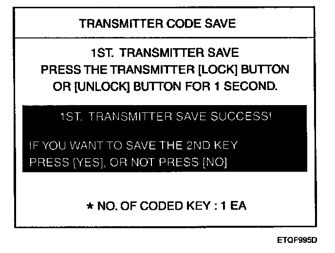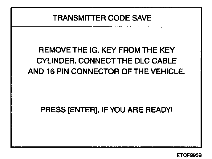 4. After removing the ignition key from key cylinder, push" ENTER" key to proceed to the next mode for code saving.