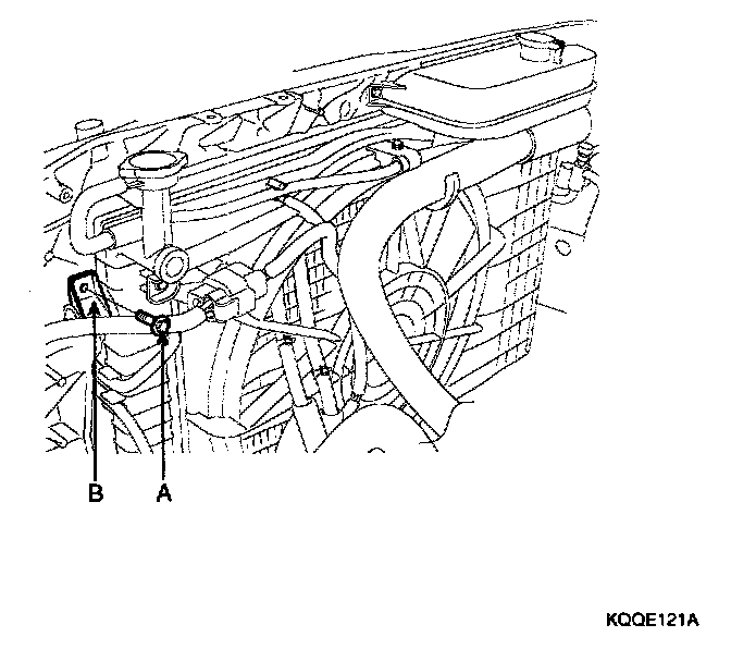3. Remove the bolt(A), then remove the radiator bracket(B) from the radiator.