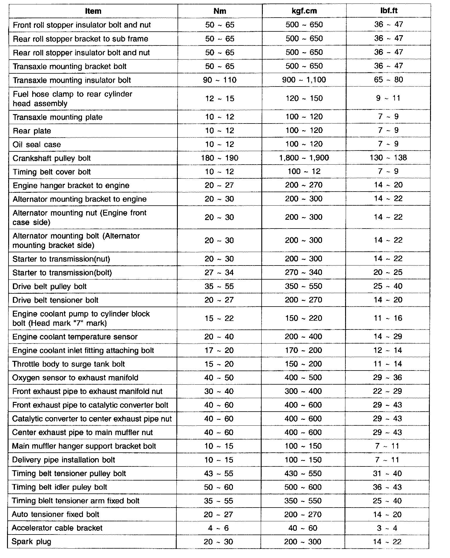 Crankshaft pulley bolt 180 - 190 Nm (1800 - 1900 kgf-cm, 130 - 138 ft. lbs.)