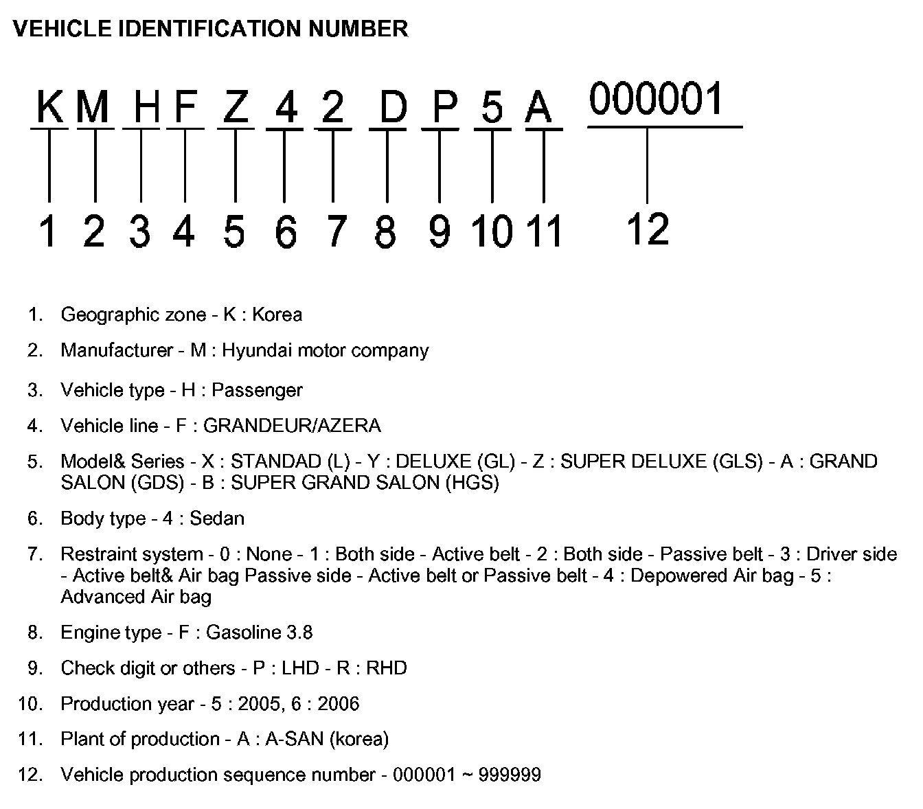 Vehicle Identification Number Description
