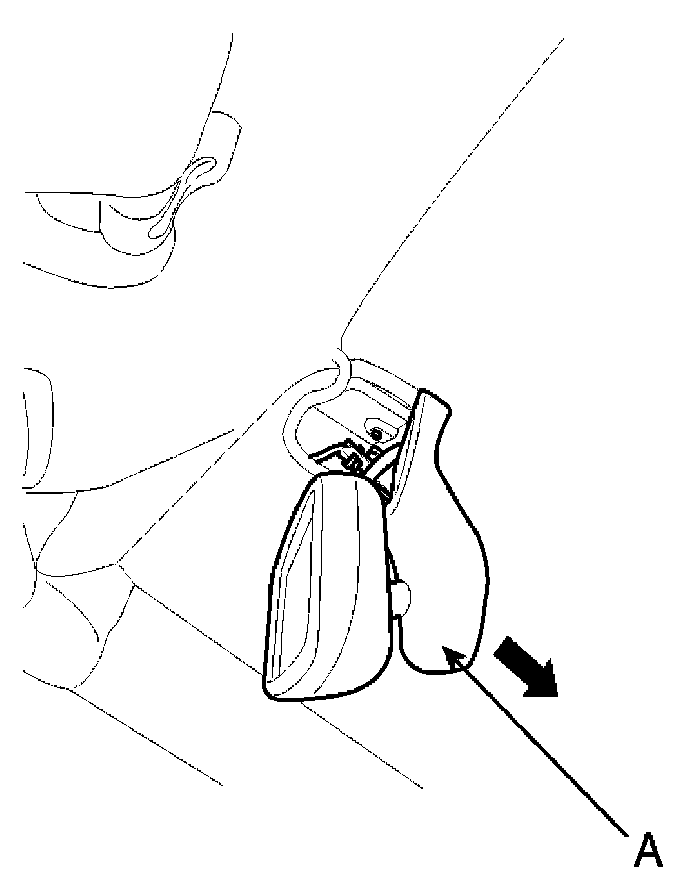 Push the inside rear view mirror base down to remove the inside rear view mirror assembly (A) after removing the mirror wire cover.
