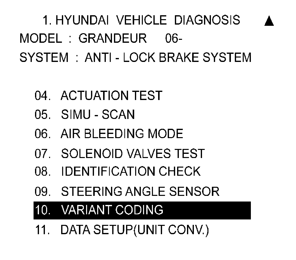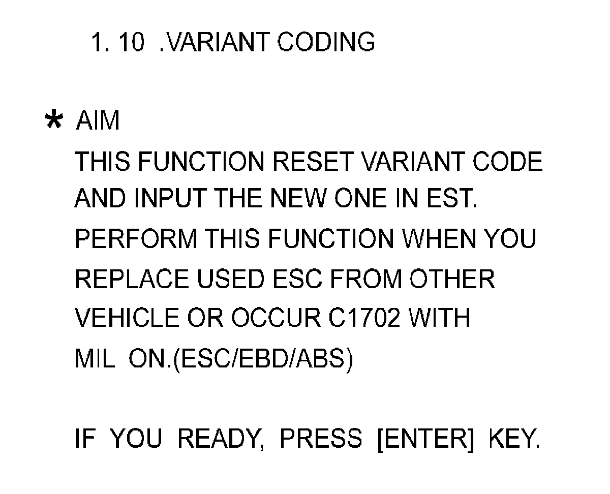 CAUTION: If the warning lamp (ESC, EBD, ABS) is lighted up, follow the "Variant coding" again.