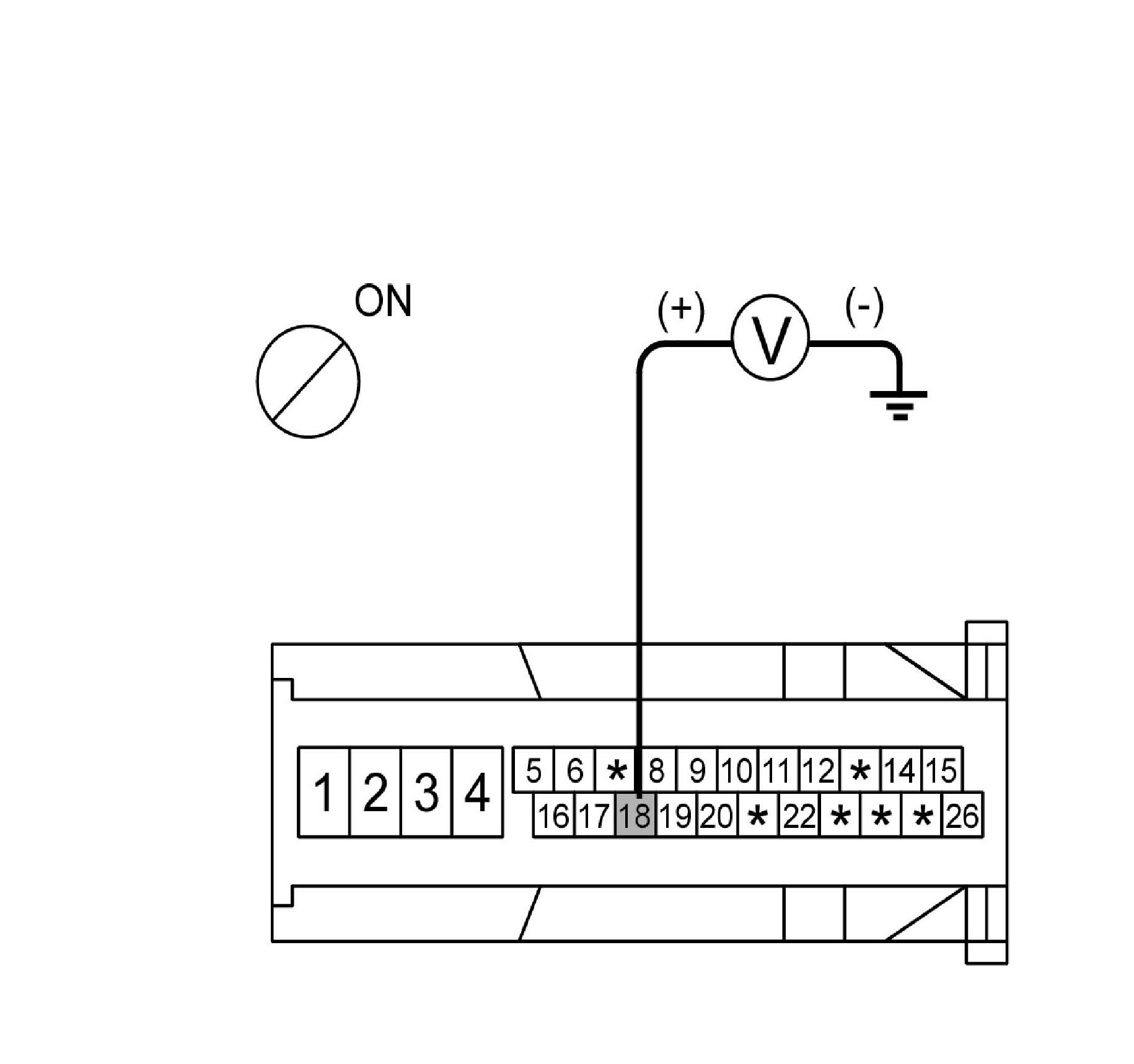 2. Turn the ignition switch ON, measure the voltage between terminal 18 of the ABS control module harness side connector and body ground.
