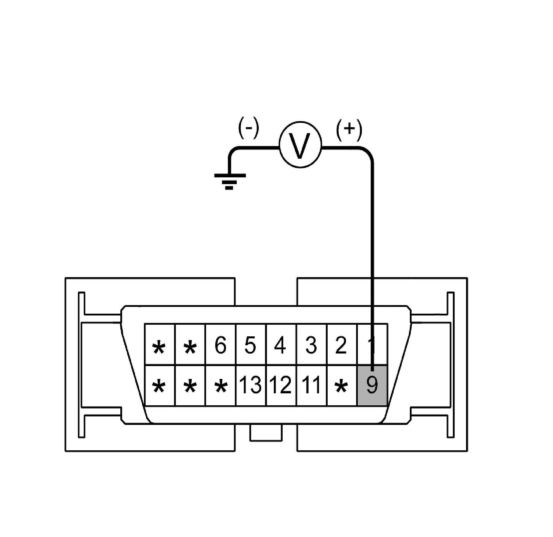 Measure the voltage between terminal 9 of the data link connector and body ground.