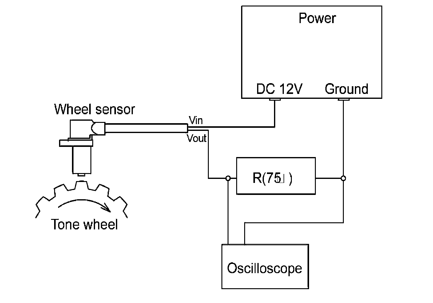 2. Compare the change of the output voltage of the wheel speed sensor to the normal change of the output voltage as shown below.