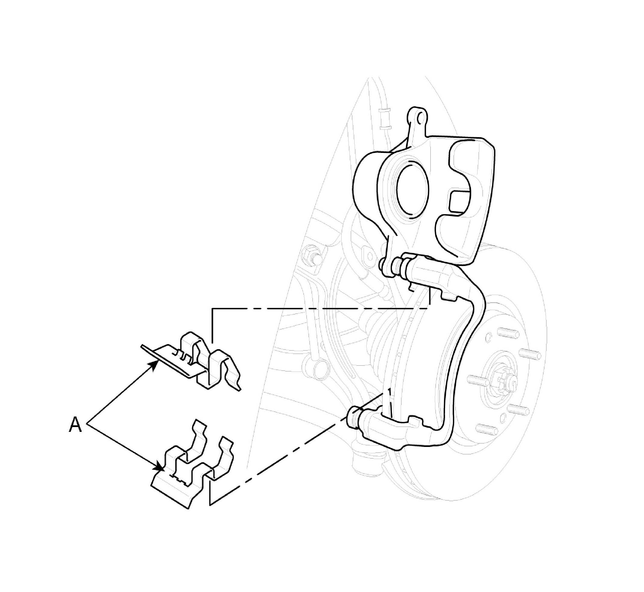 1. Install the pad retainers (A) on the caliper bracket.