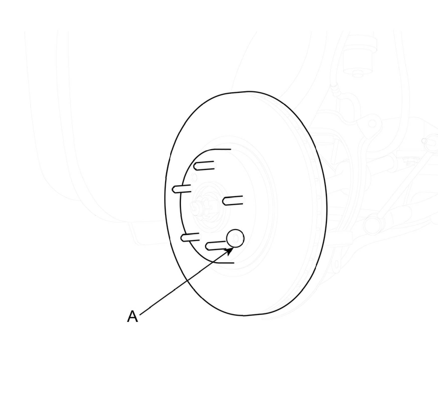 Remove the brake disc from hub using an M8 screw (A) if the brake disc has been seized with the hub due to corrosion or overheating.