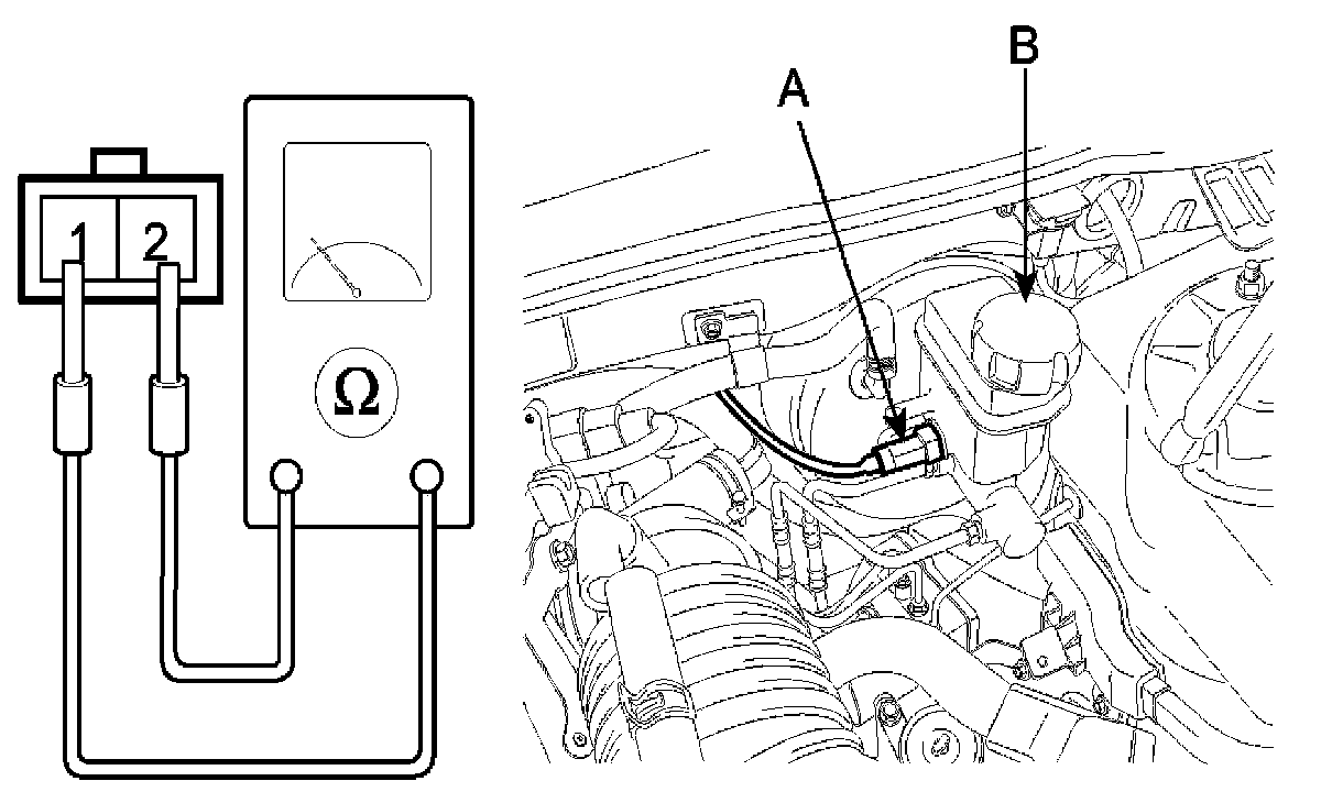 Remove the connector (A) from the switch located at the brake fluid reservoir (B).