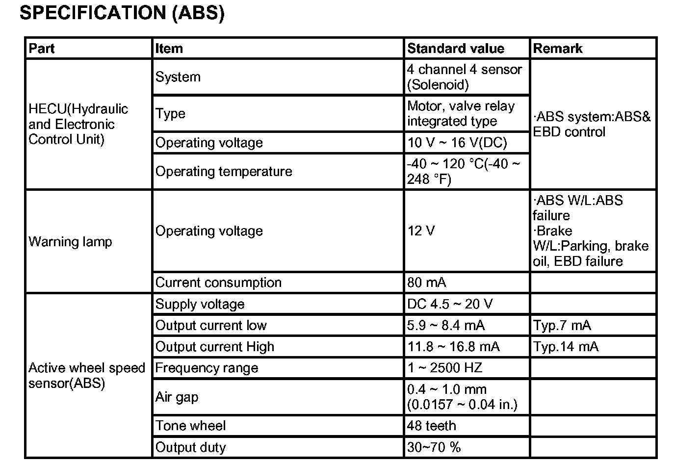 Specification (ABS)