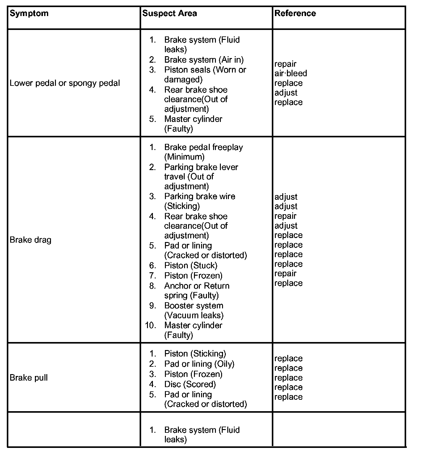 PROBLEM SYMPTOMS TABLE Use the table below to help you find the cause of the problem. The numbers indicate the priority of the likely cause of the problem. Check each part in order. If necessary, replace these parts
