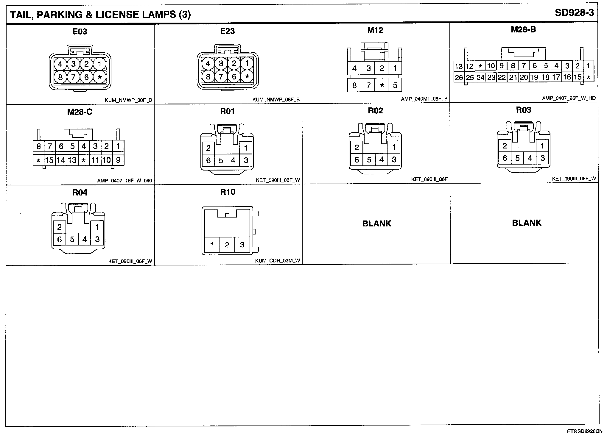Tail, Parking & License Lamps Connector Pin Outs:
