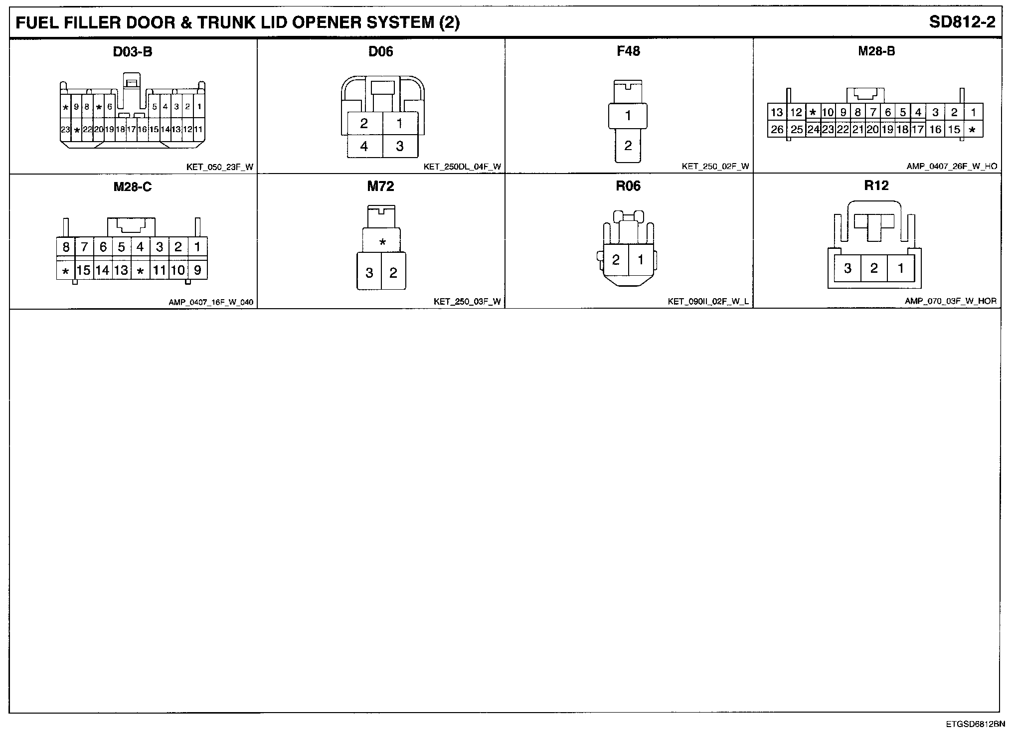 Fuel Filler Door & Trunk Lid Opener System Connector Pin Outs: