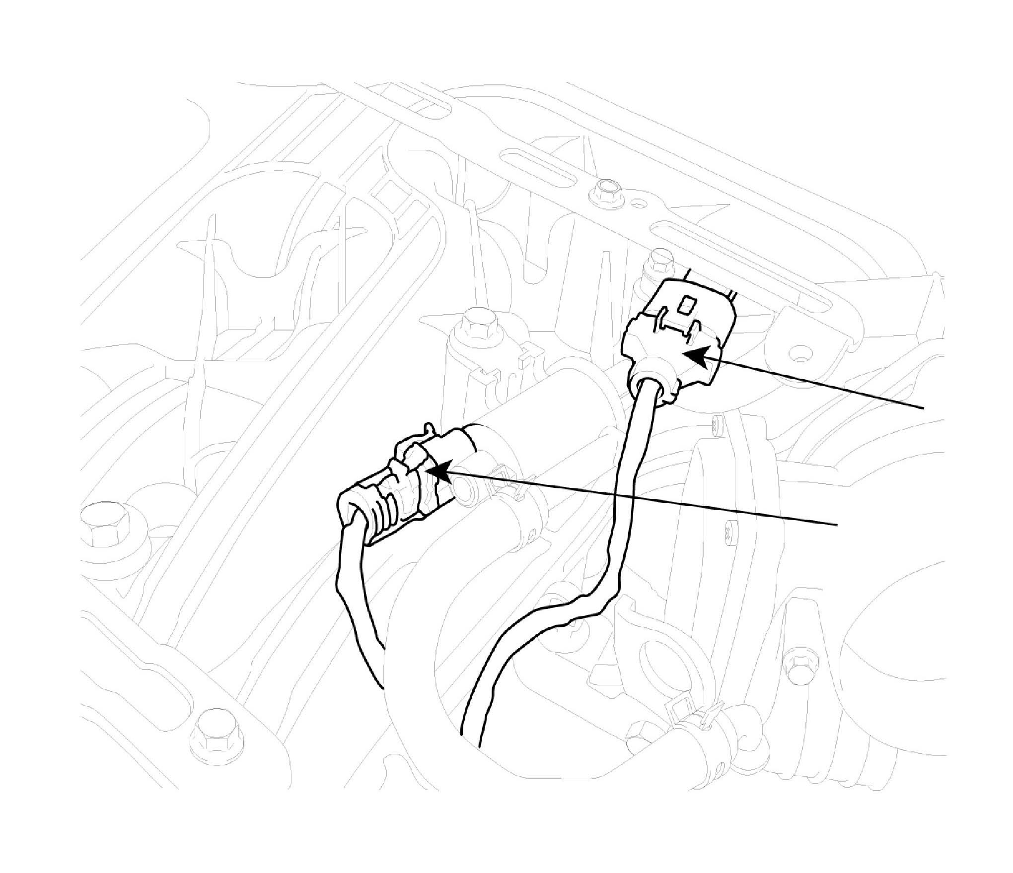 6. Disconnect ETC connector (A) and knock sensor connector (B).