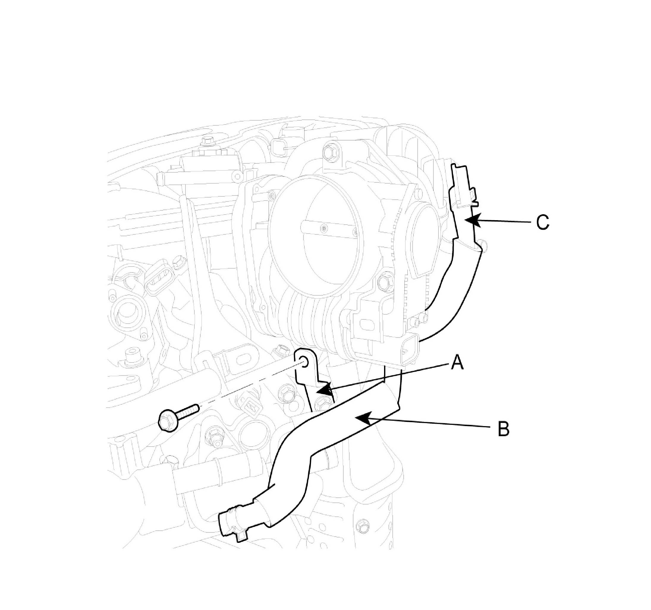 5. Disconnect PCSV connector (A), MAP sensor connector (B) and PCSV hose.