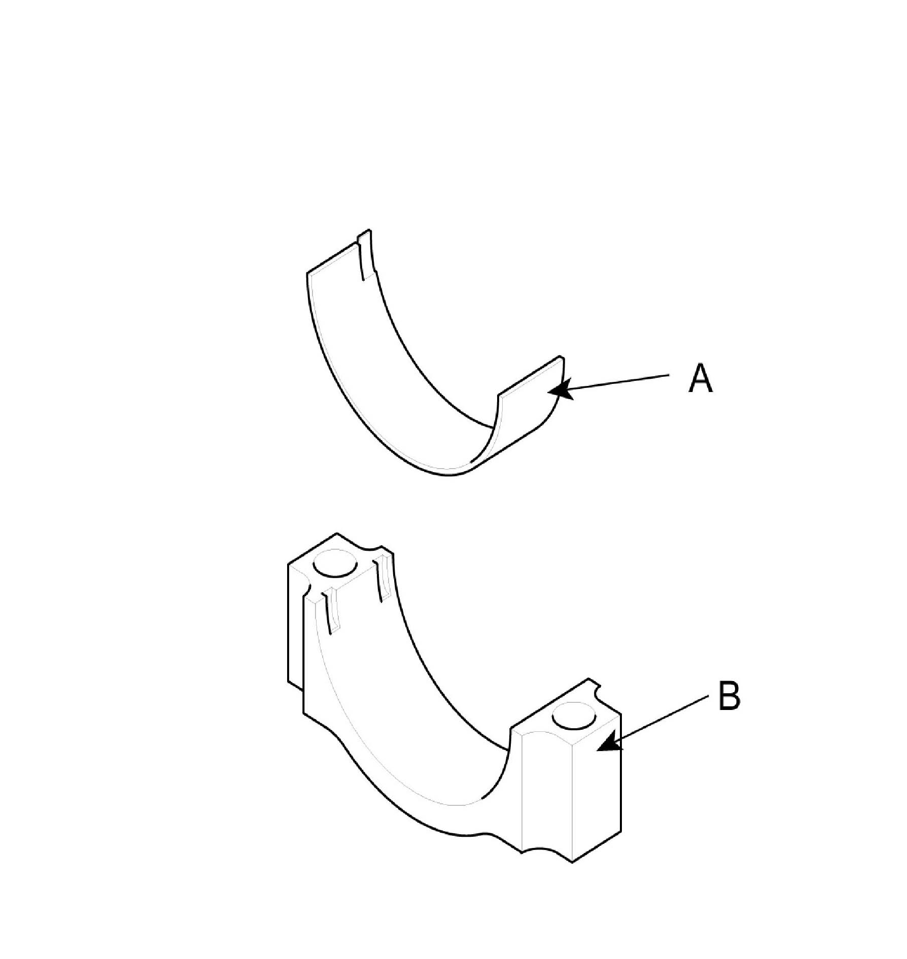 B. Install the bearings (A) in the connecting rod and connecting rod cap (B).