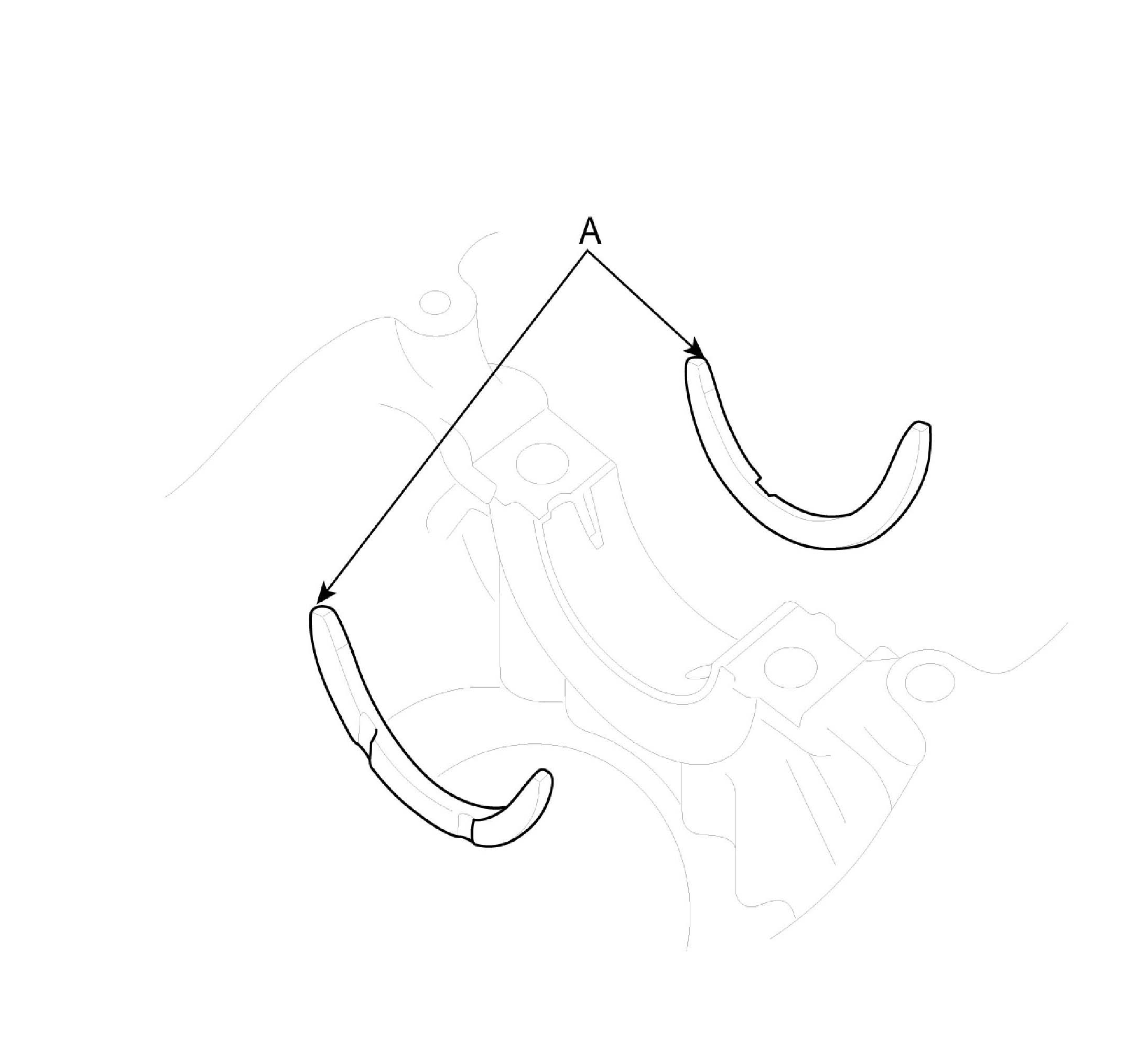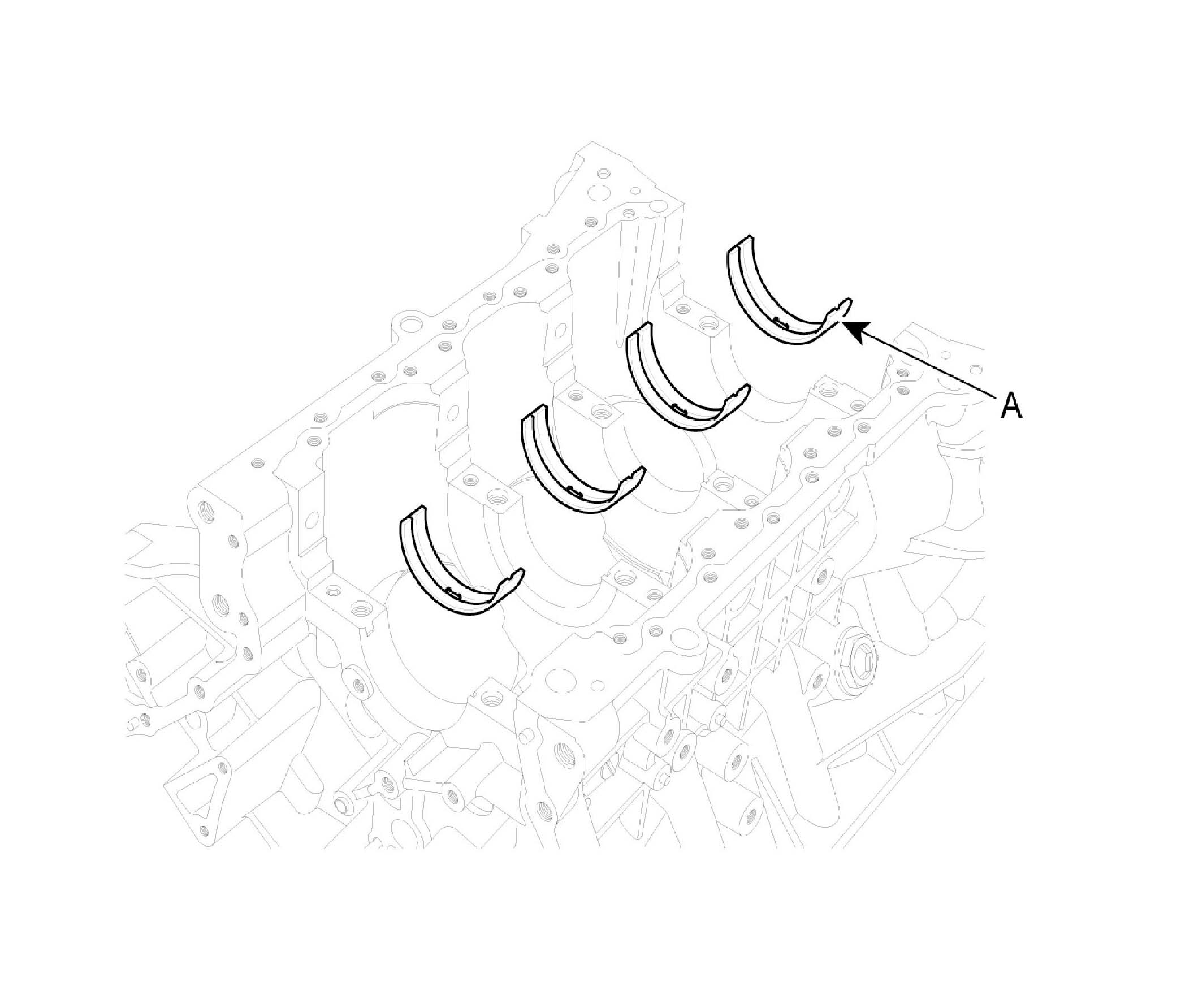 A. Align the bearing claw with the claw groove of the cylinder block, push in the 4 upper bearings (A).