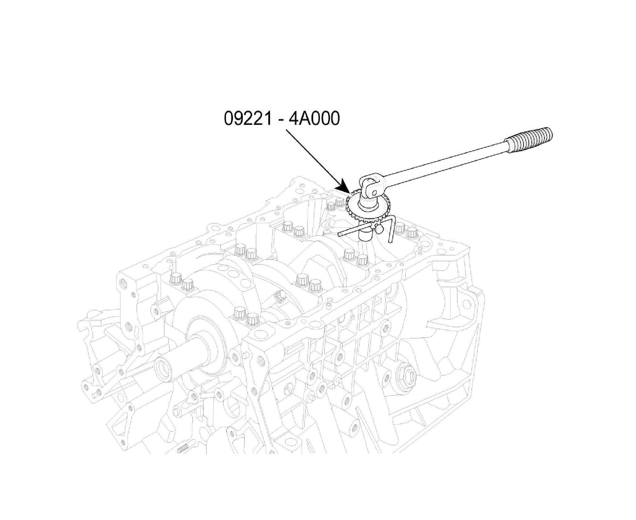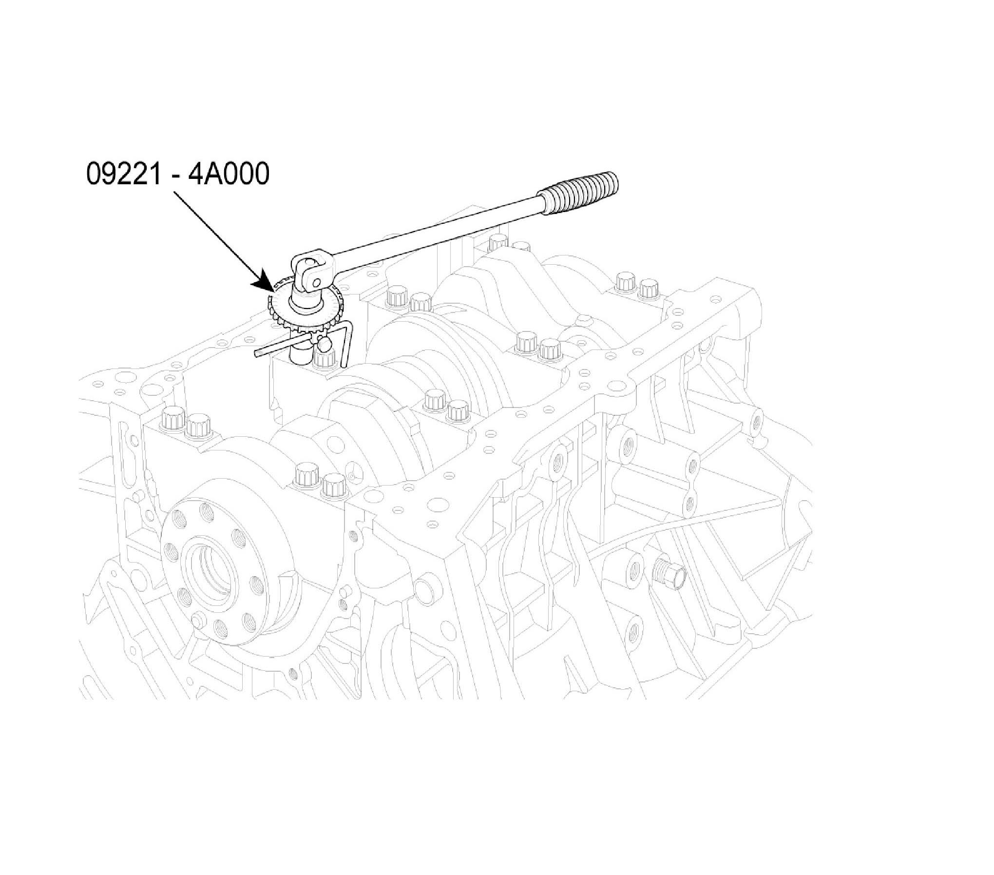^ If any of the bearing cap bolts are broken or deformed, replace it. Use SST (09221-4A000), install main bearing cap bolts.