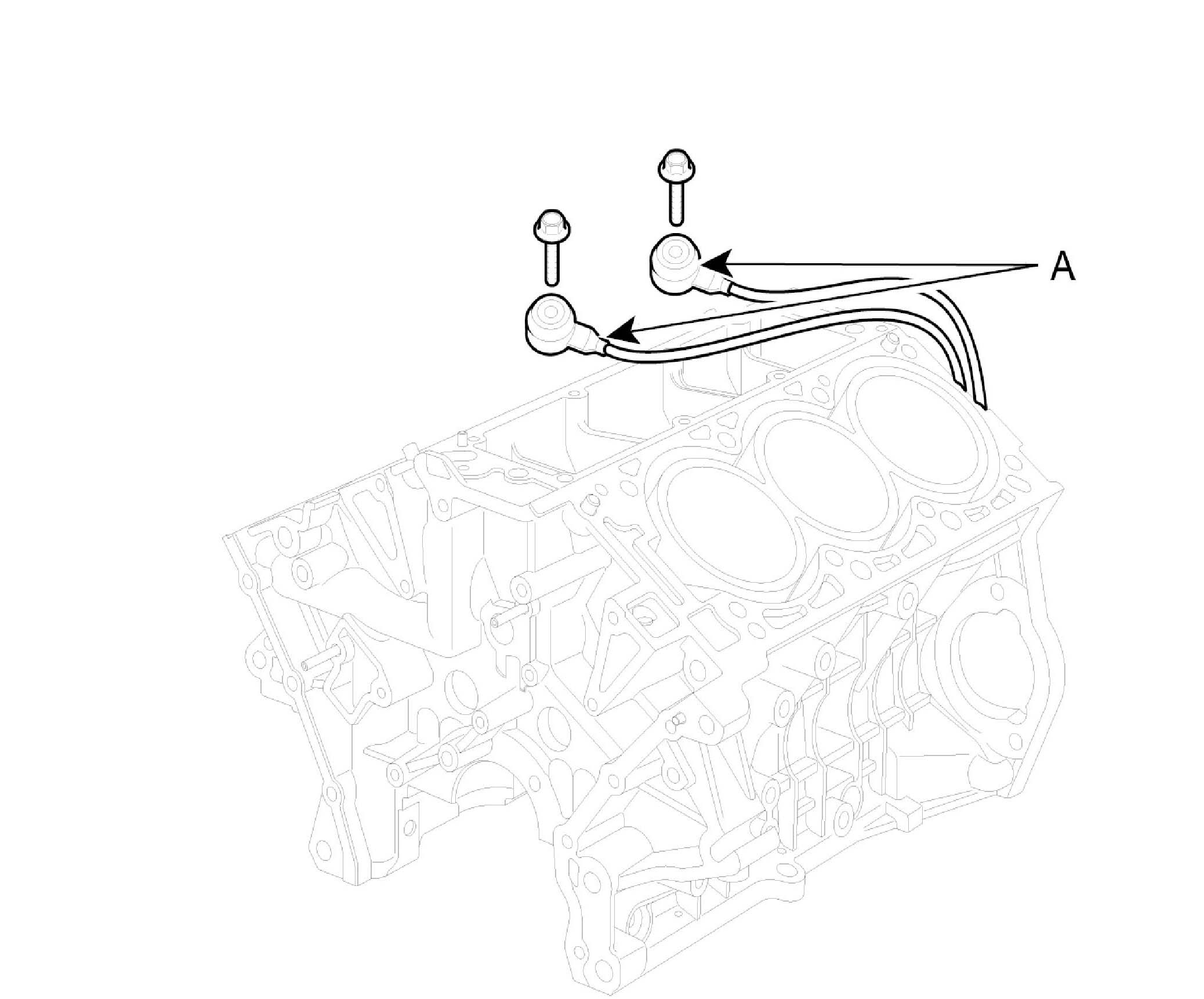 5. Install thrust bearings. Install the 2 thrust bearings (A) under the No.3 journal position of the cylinder block with the oil grooves facing outward.