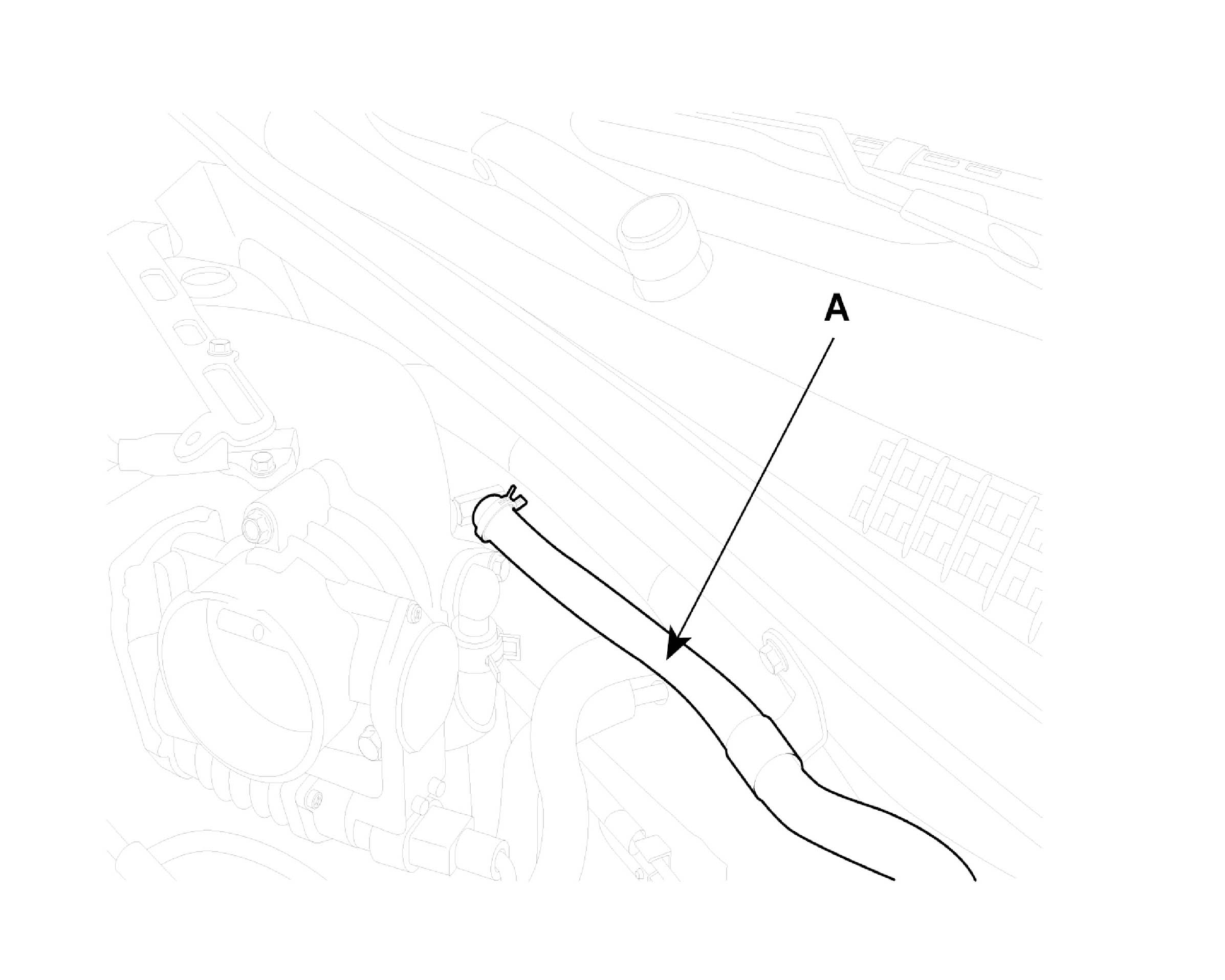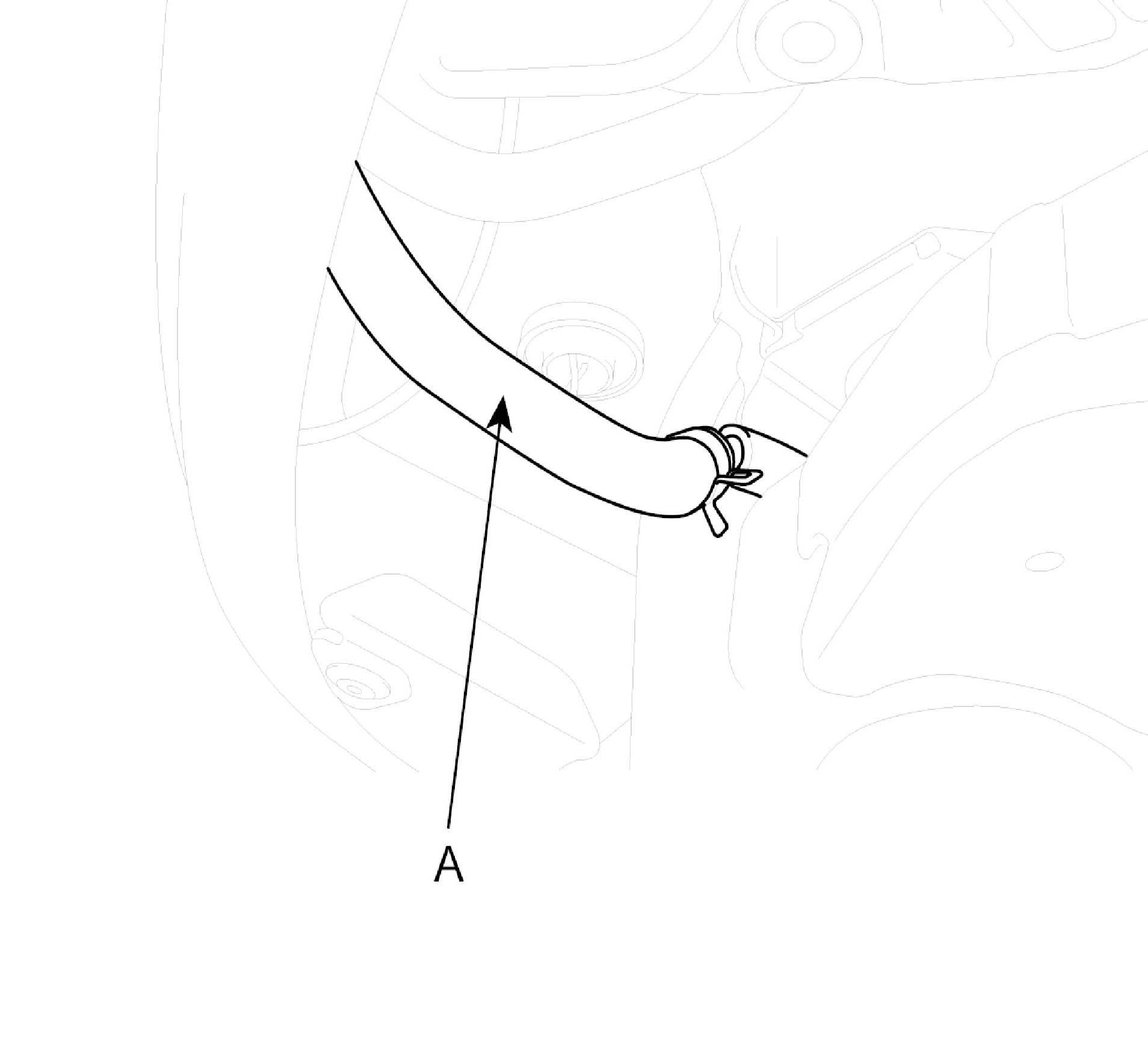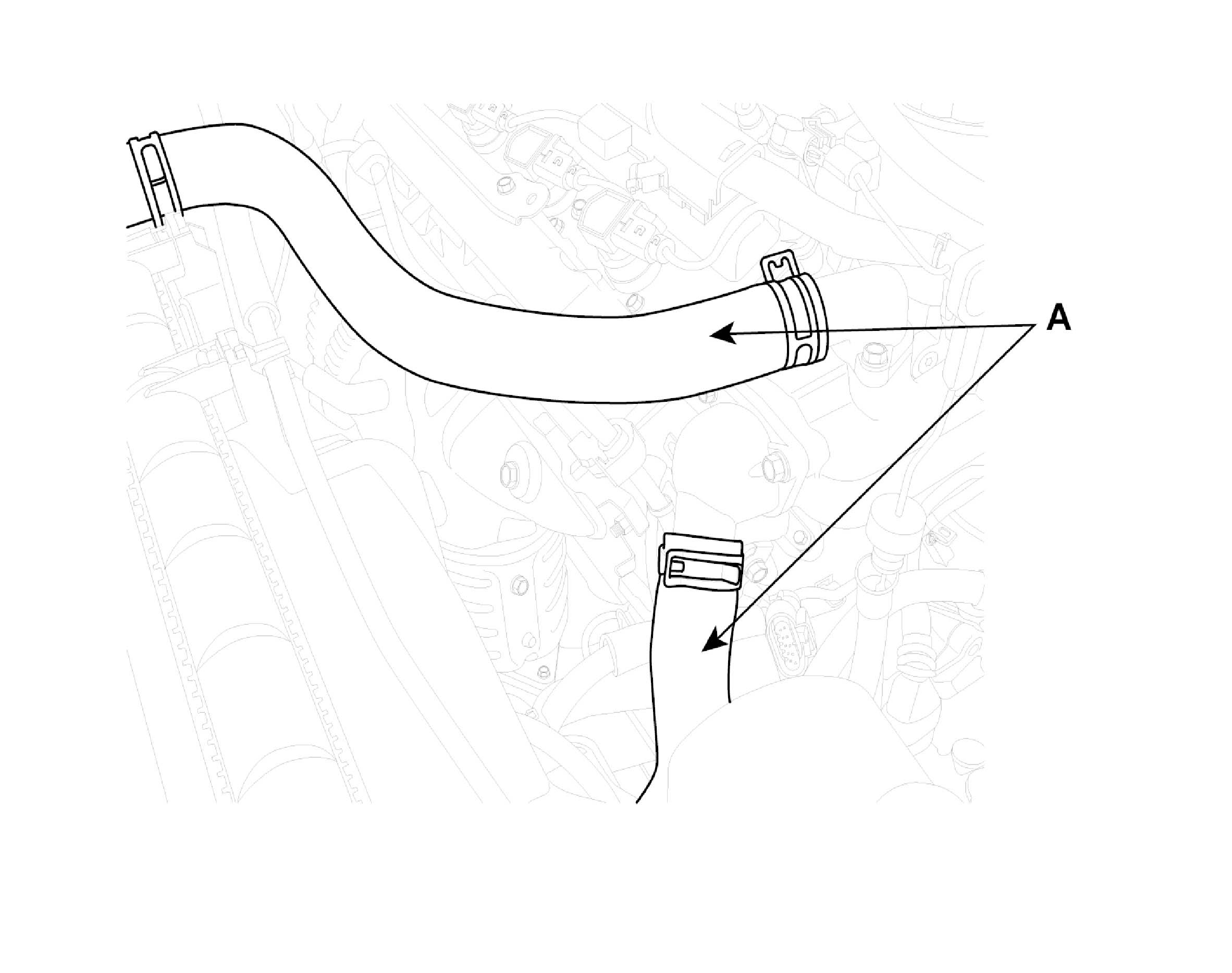 9. Remove the upper radiator hose and lower radiator hose (A).