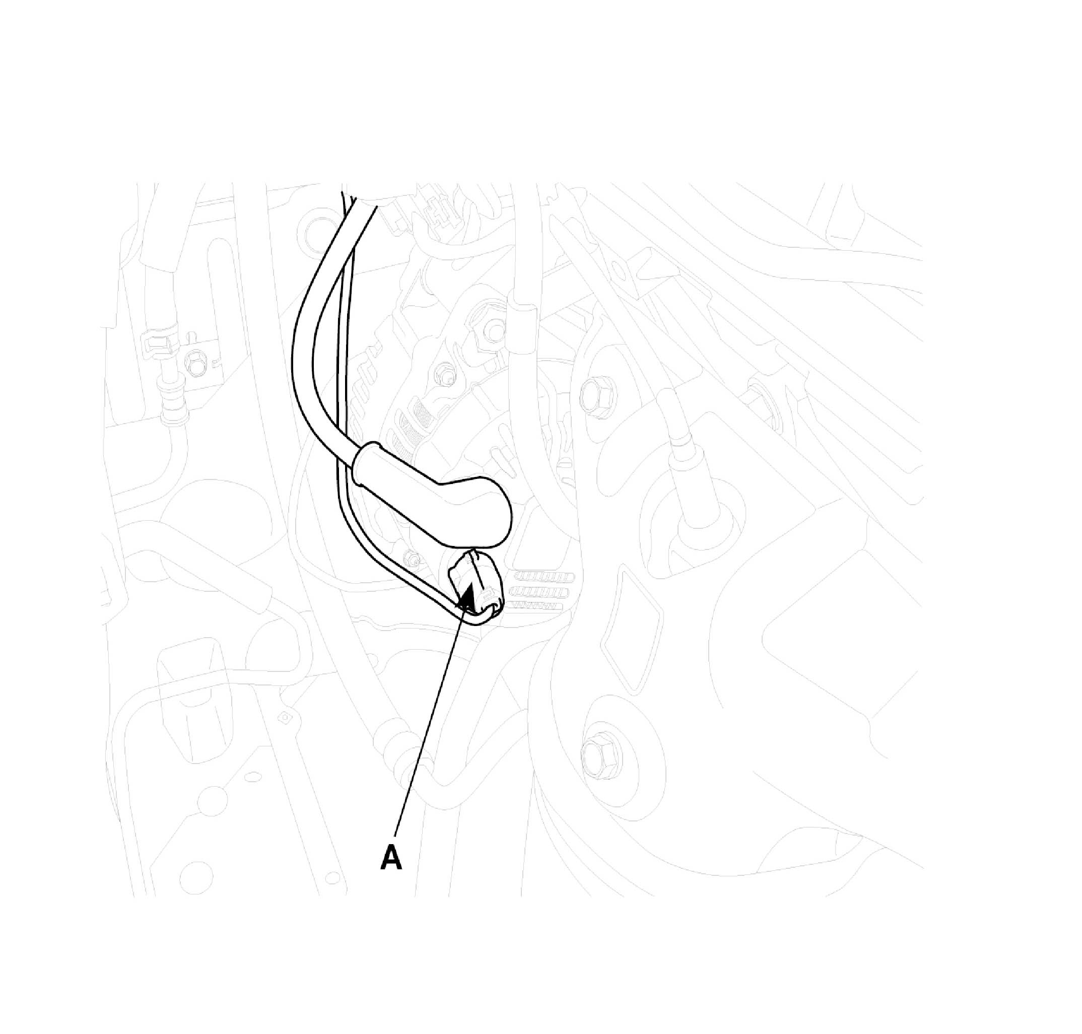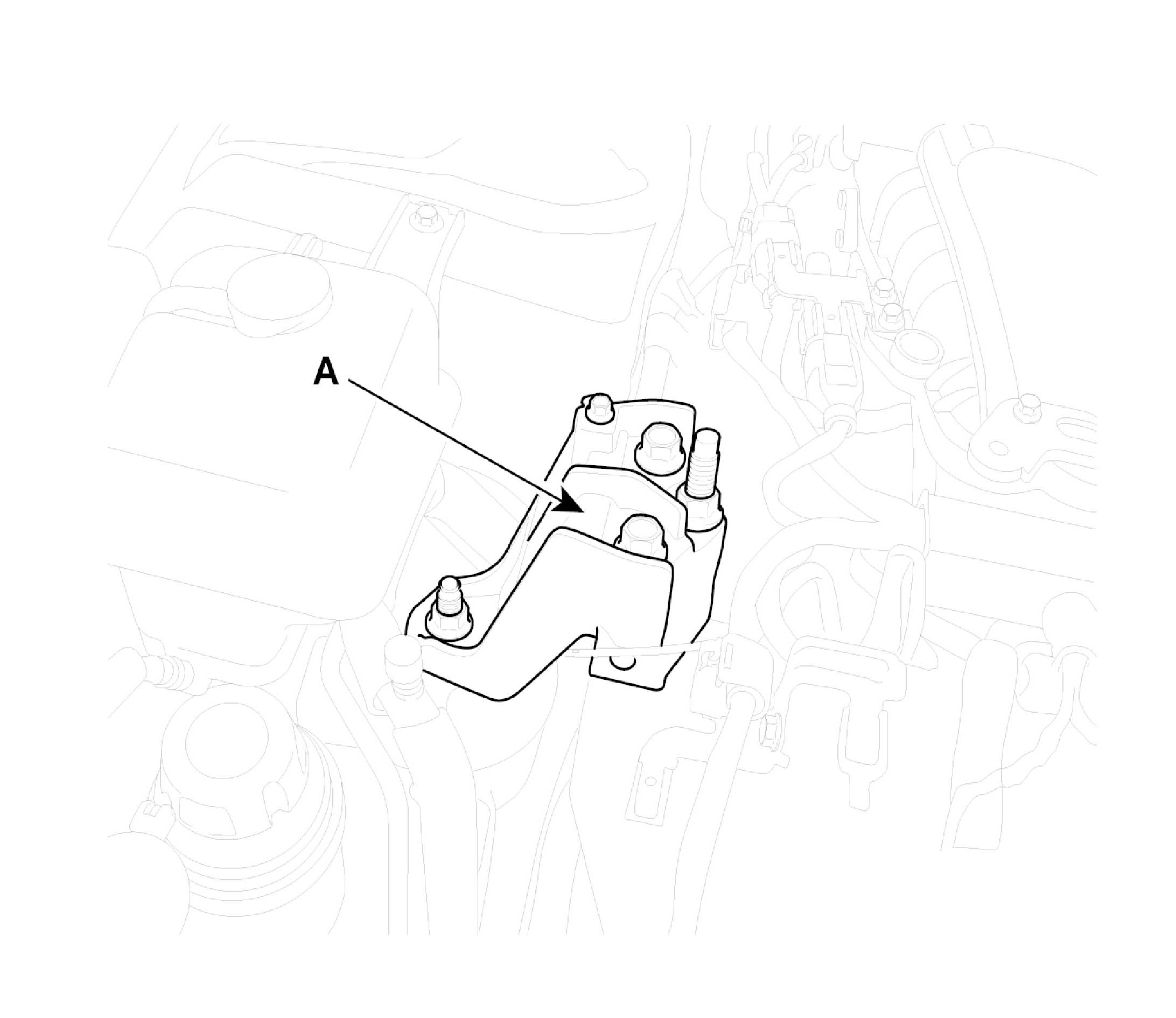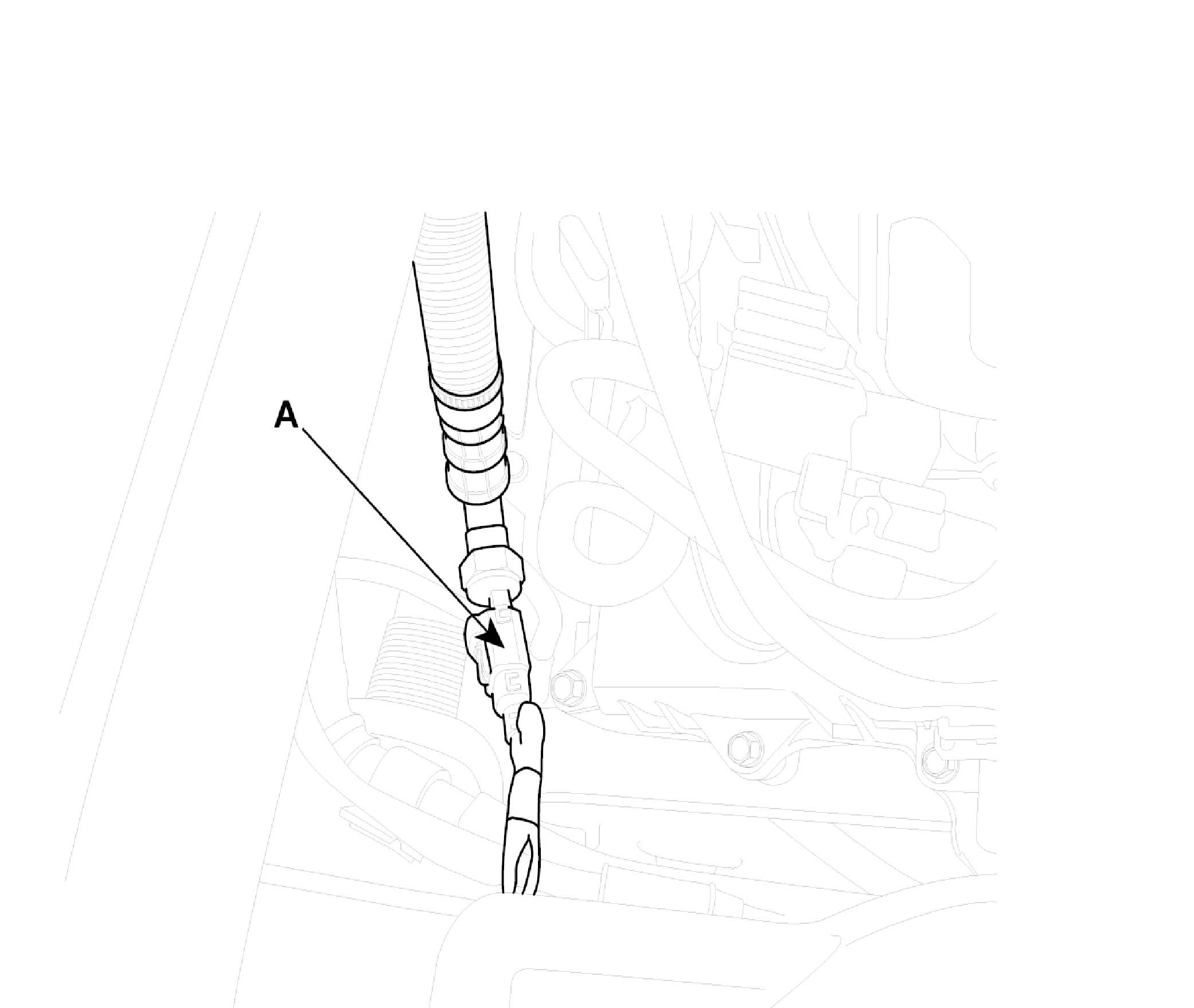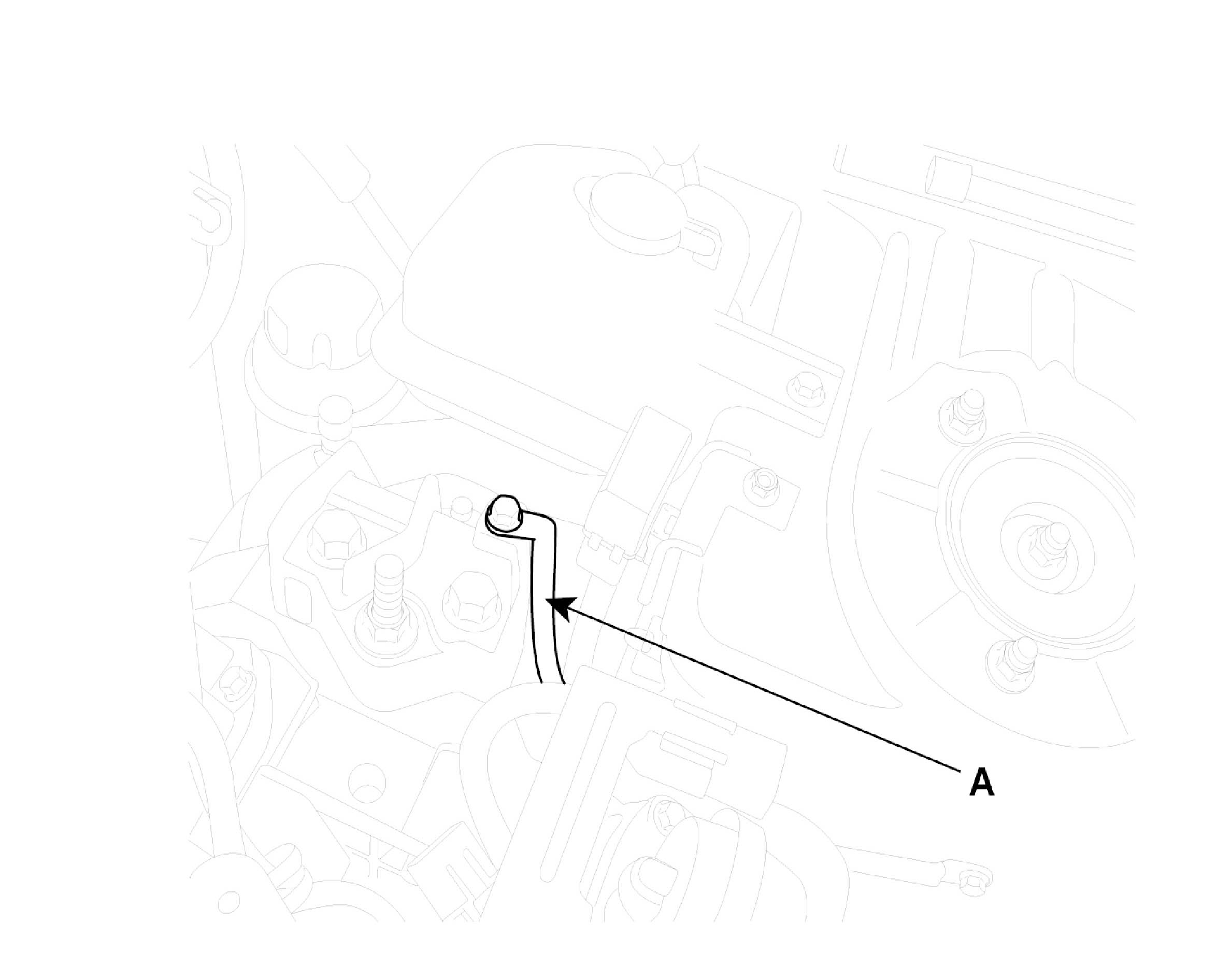 32. Disconnect the ground cable (A) from the engine mounting bracket.
