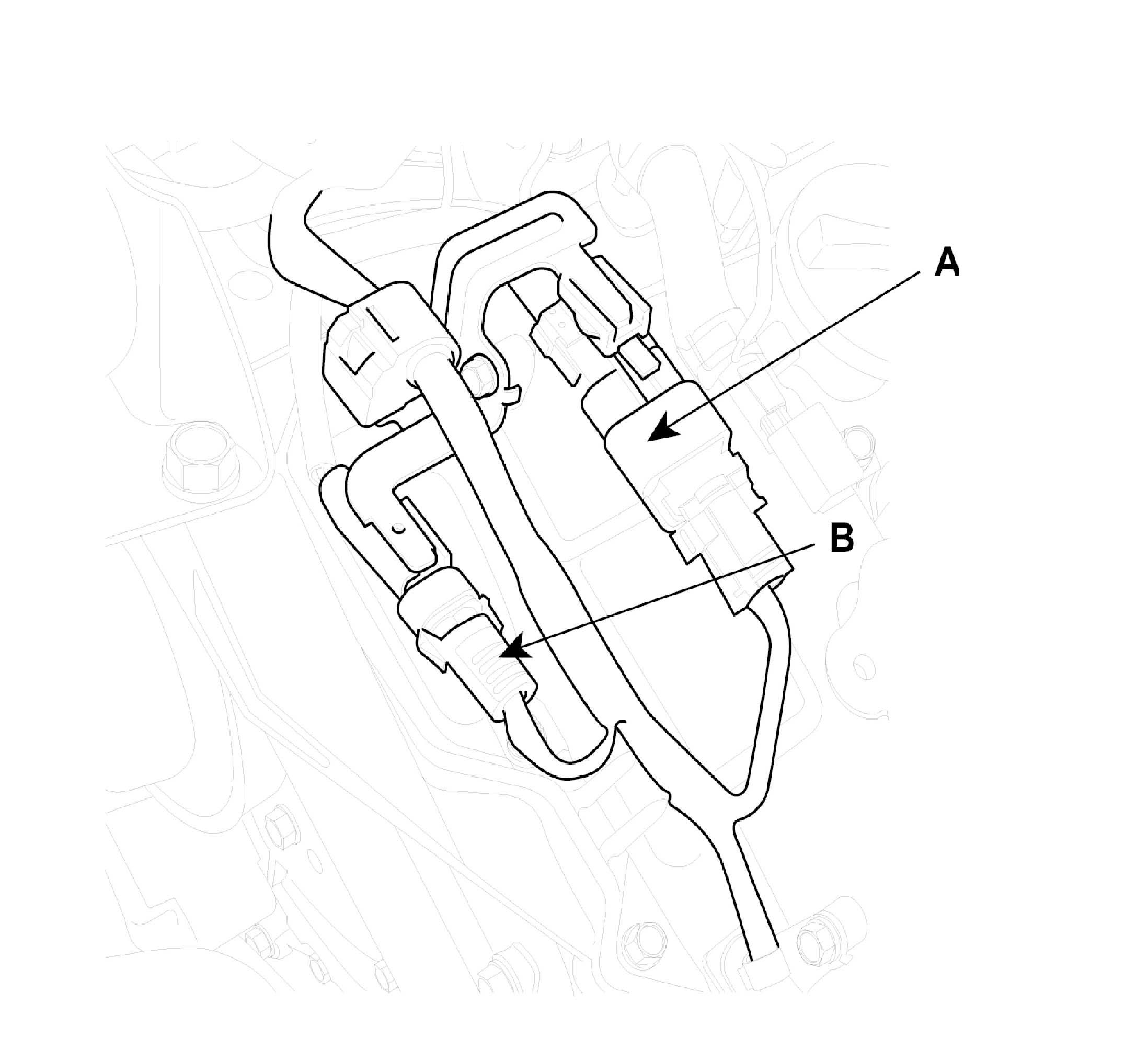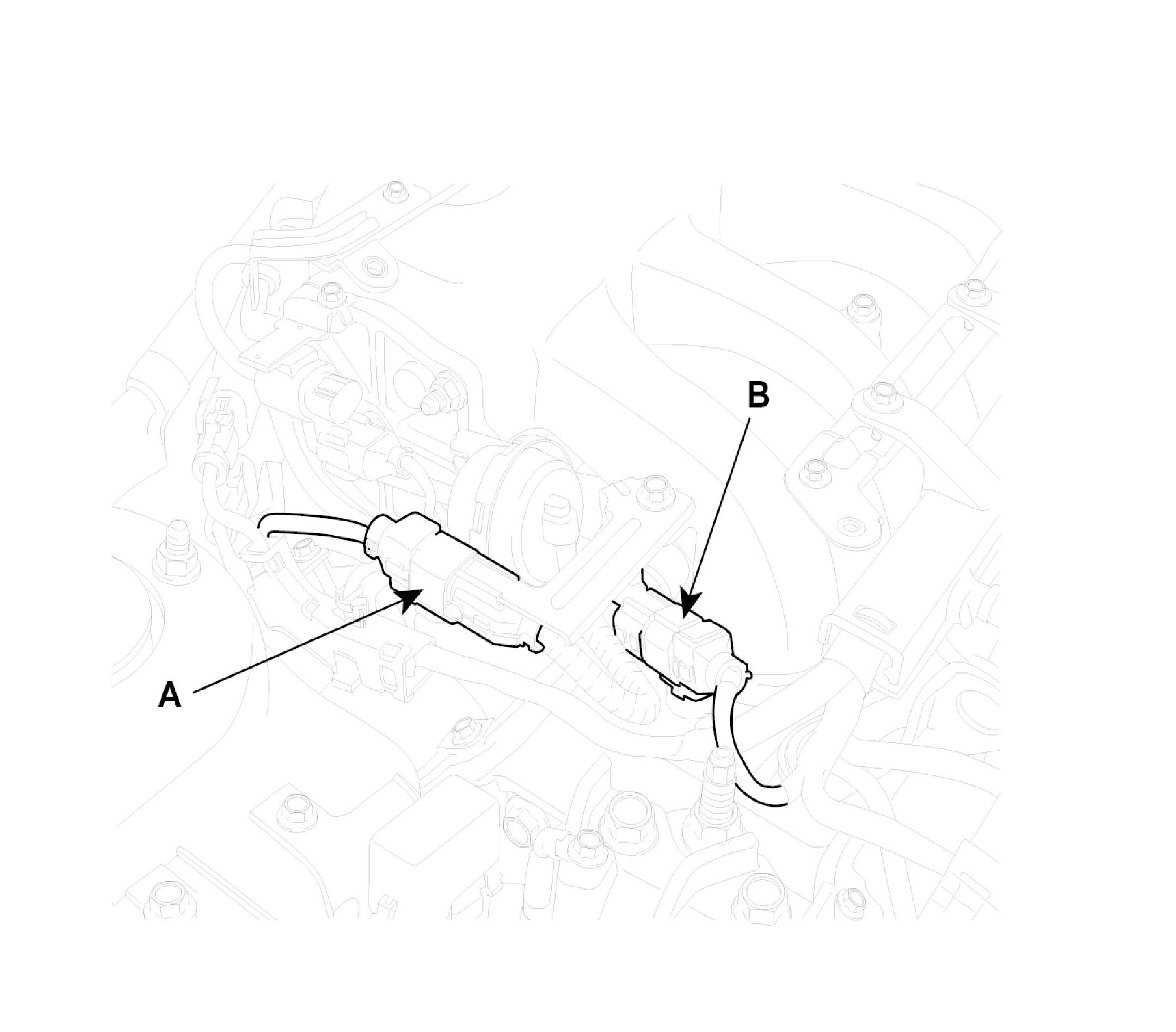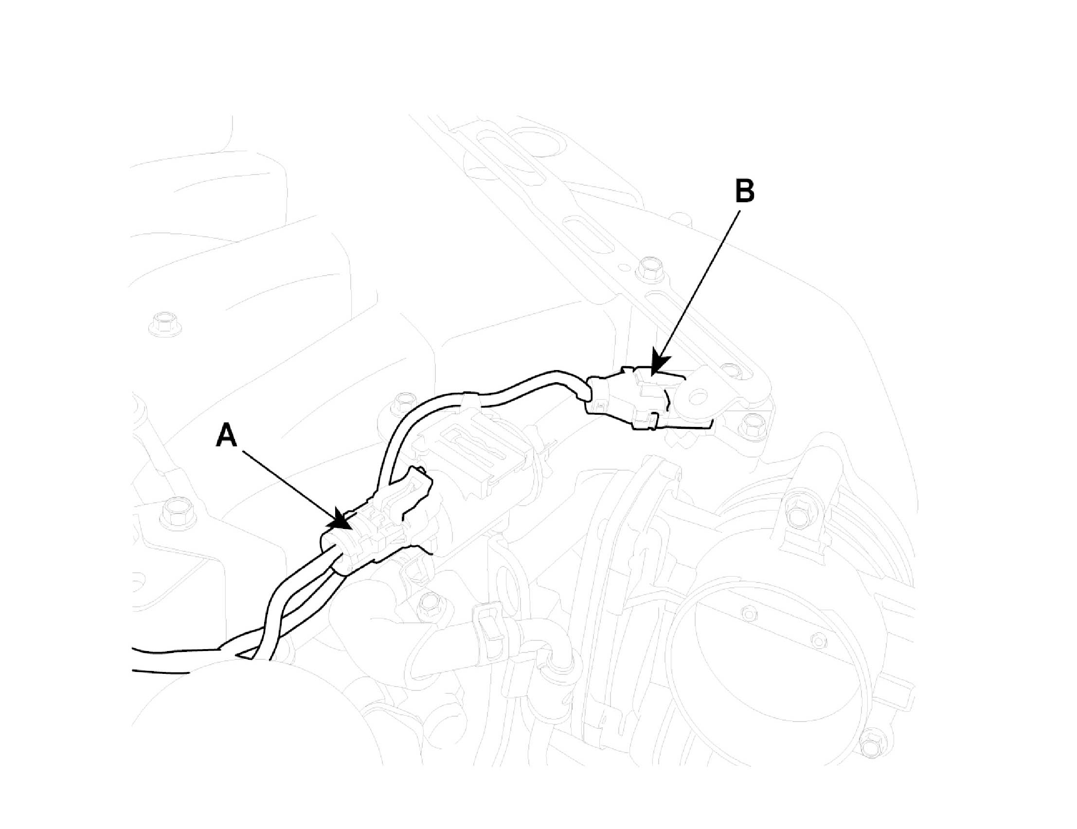 I. Disconnect PCSV connector (A) and MAP sensor connector (B).