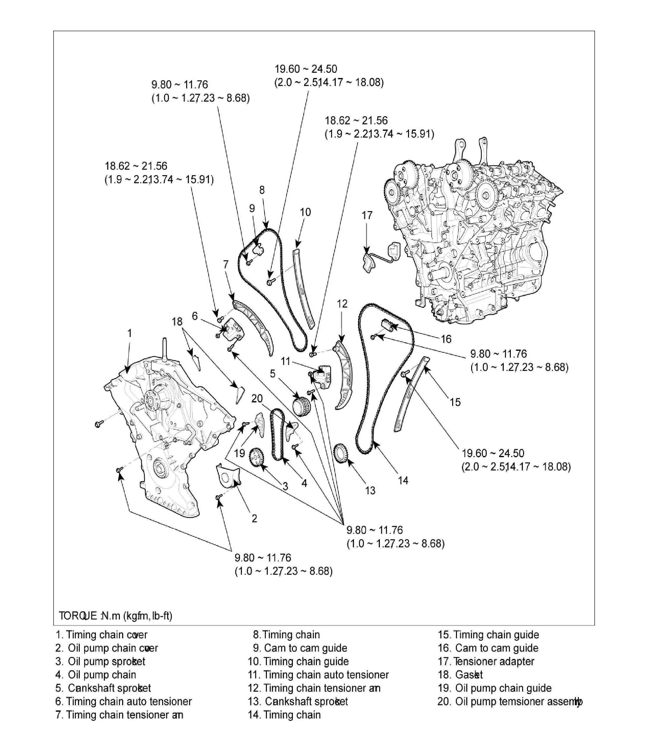 Tightening torque 19.60 - 24.50 Nm (2.0 2.5 kgf.m, 14.17 - 18.08 ft. lbs.)