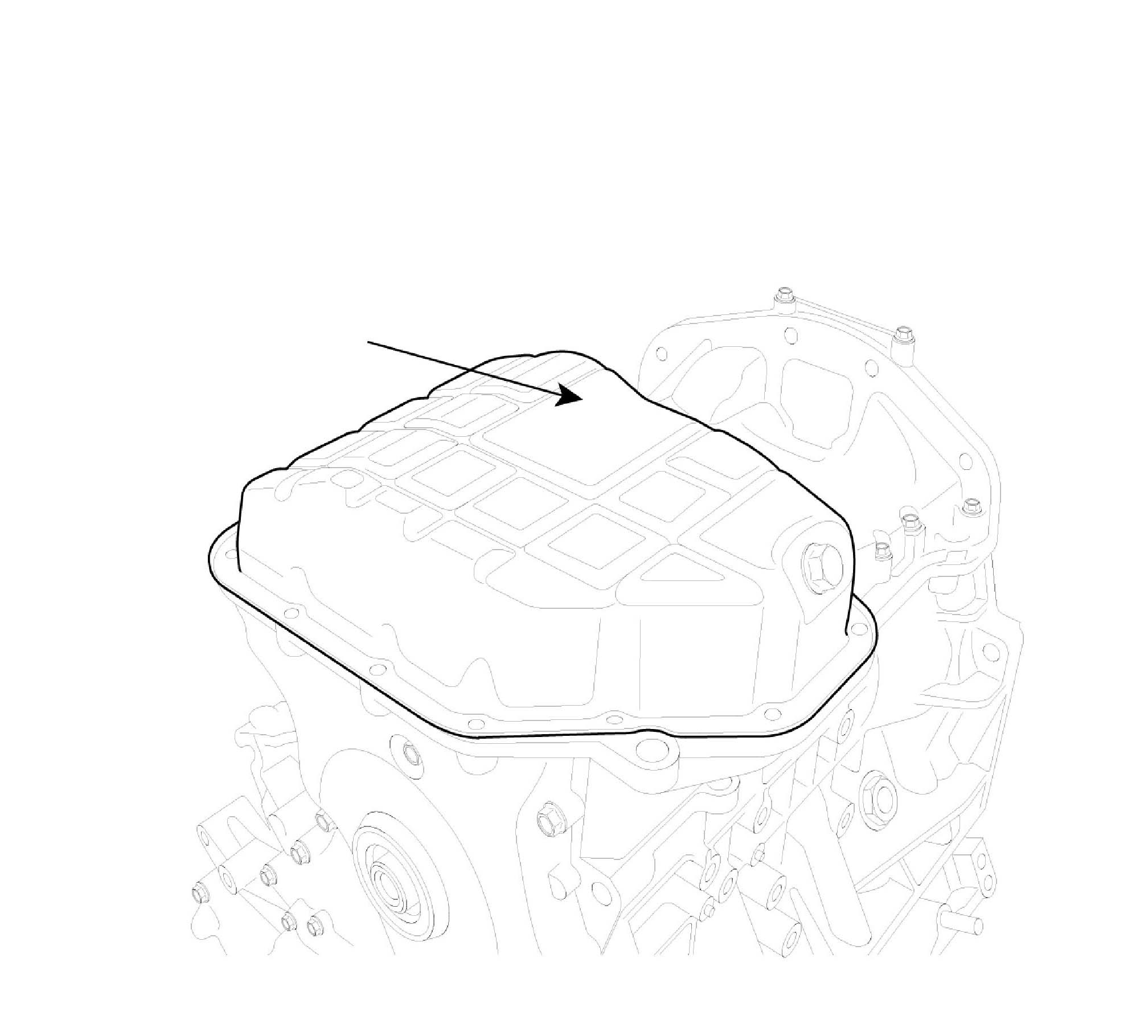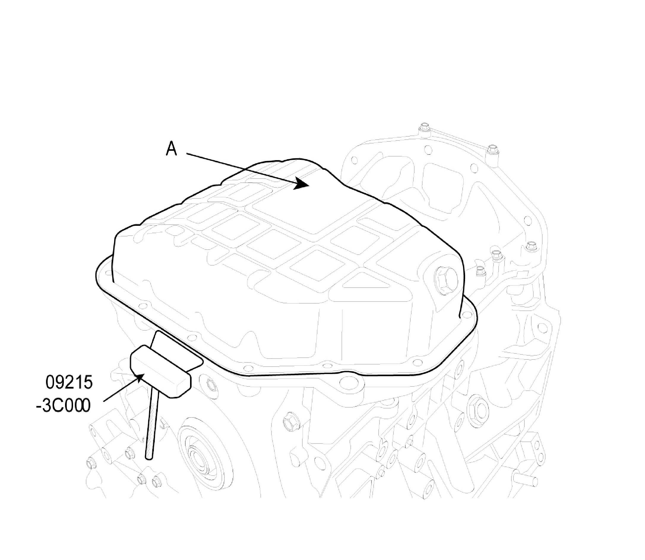 ^ Install oil pan (A).Uniformly tighten the bolts in several passes.
