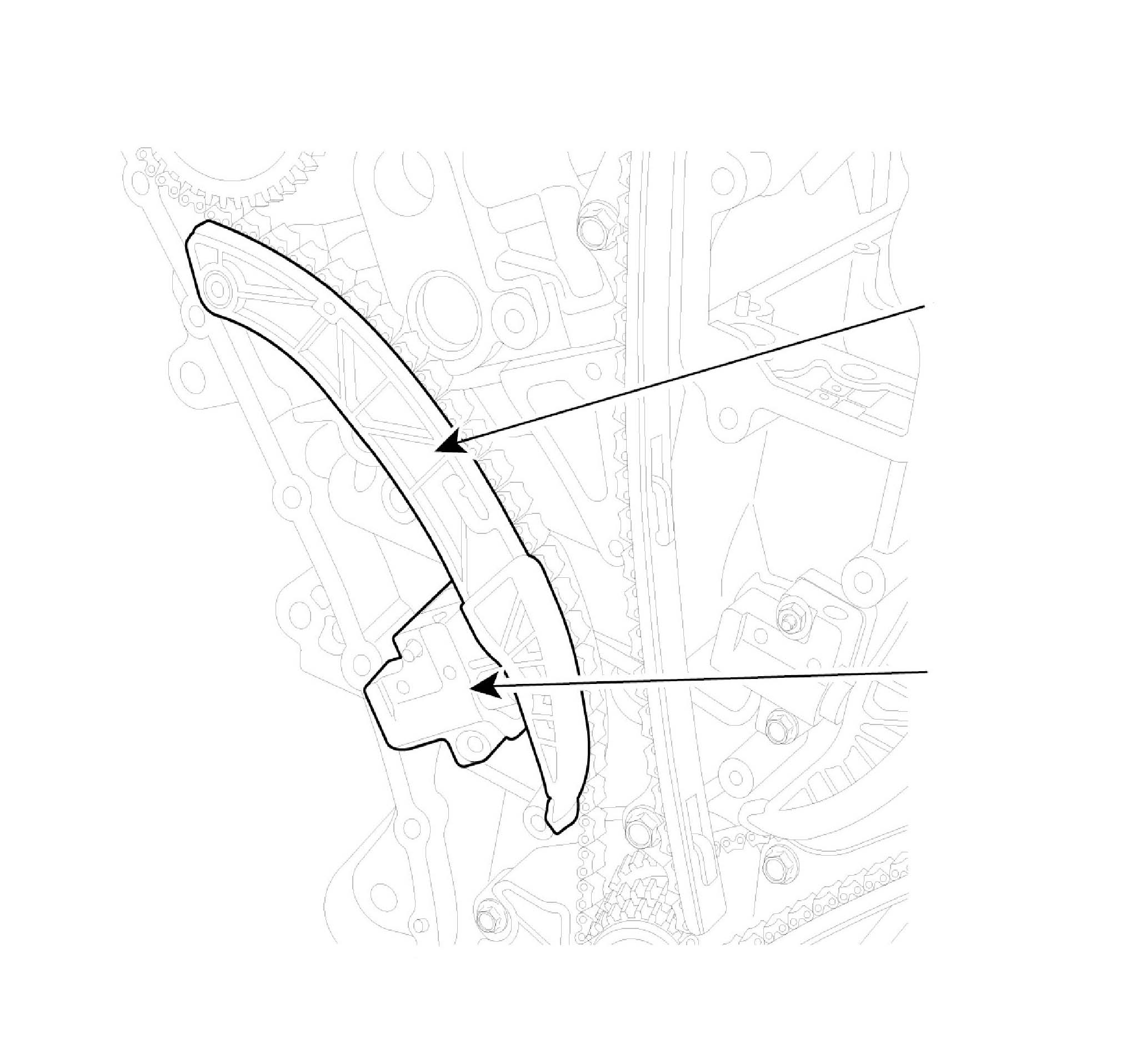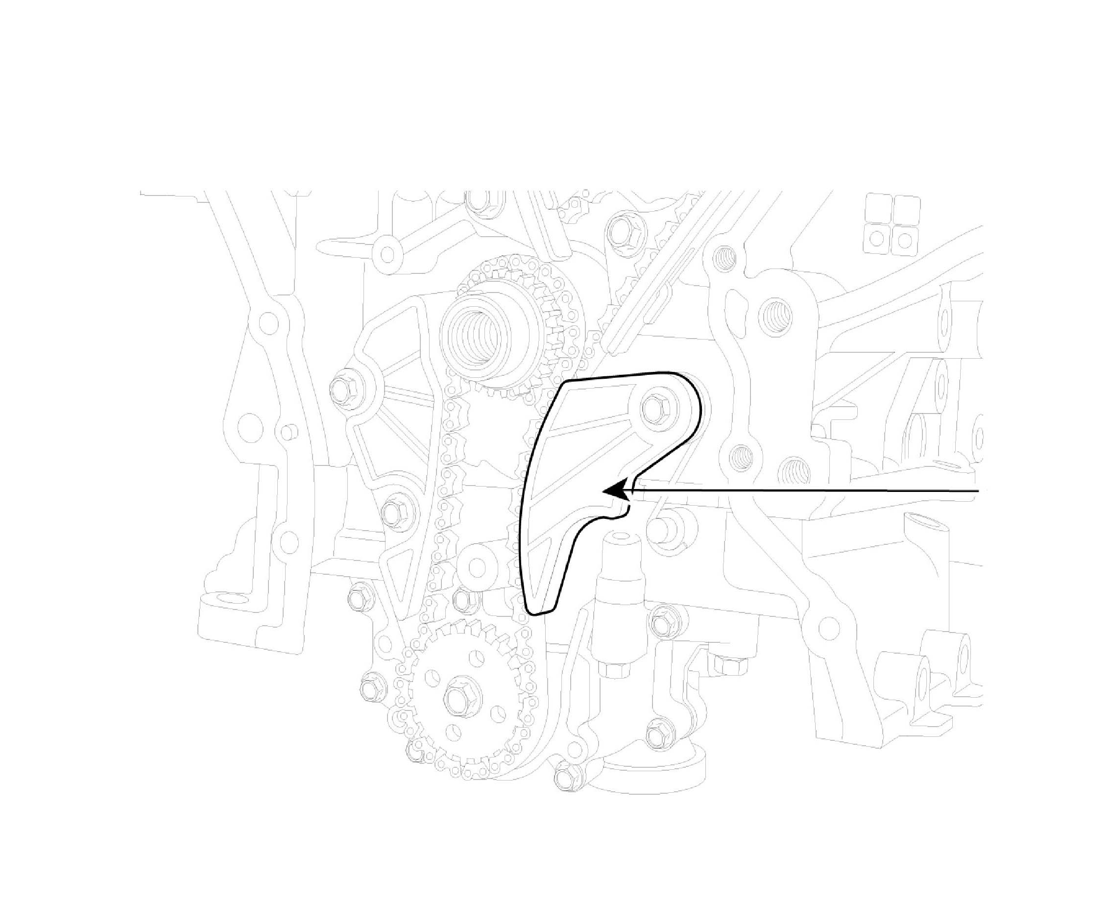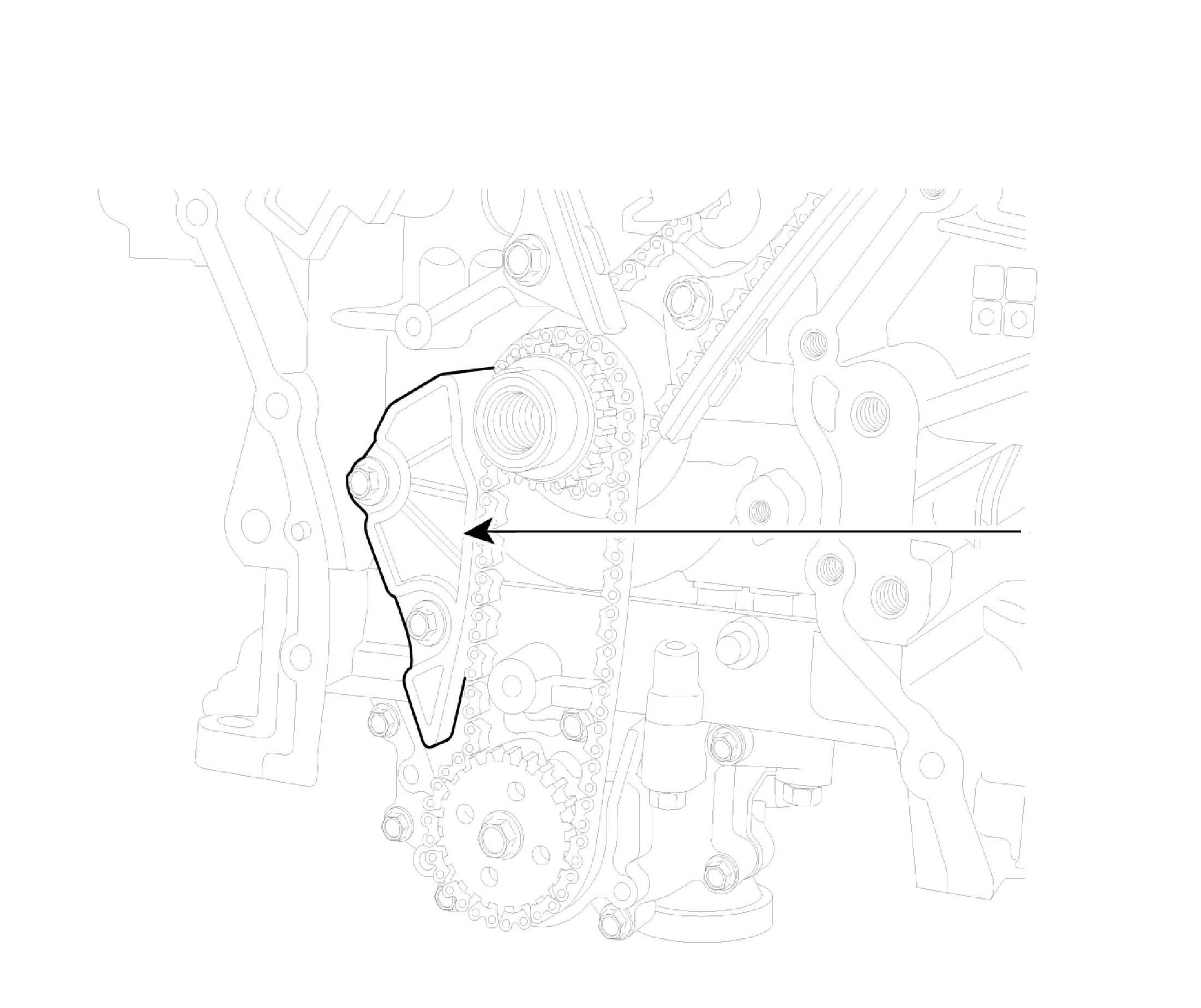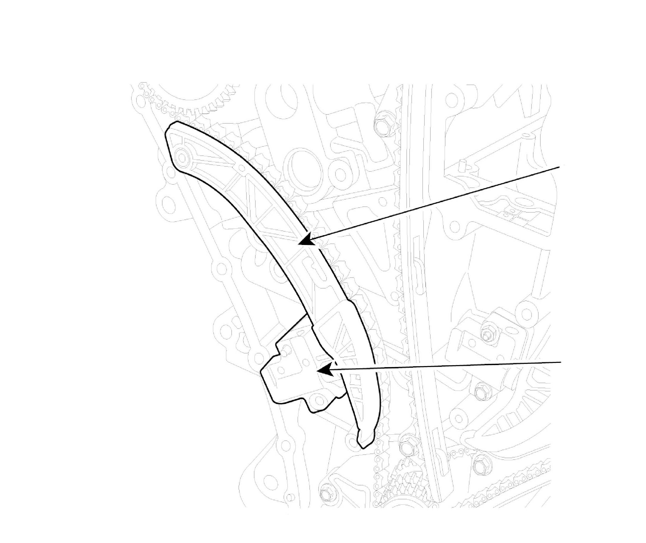 2. Inspect the tensioner arm and chain guide for abnormal wear, cracks, or damage. Replace as necessary.